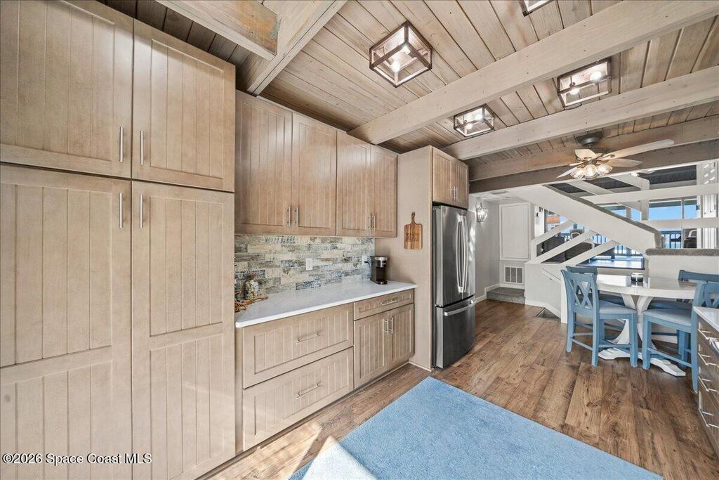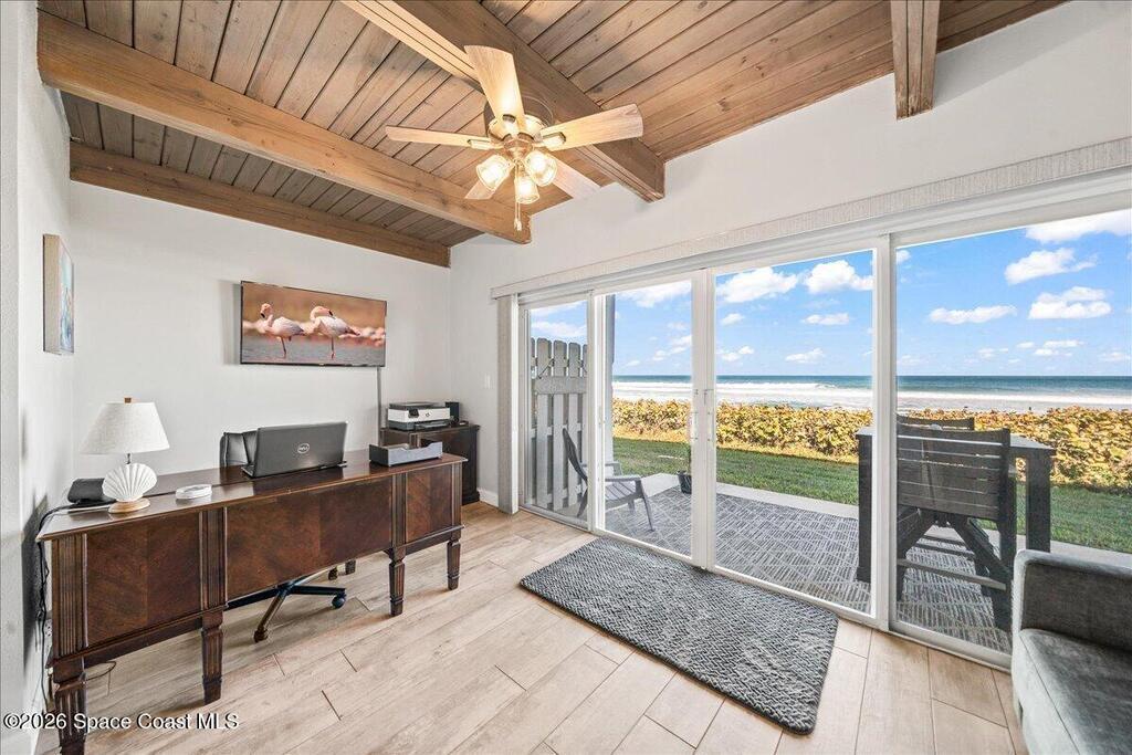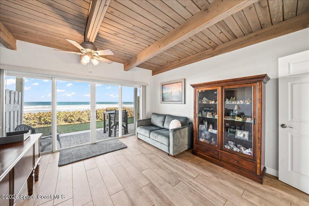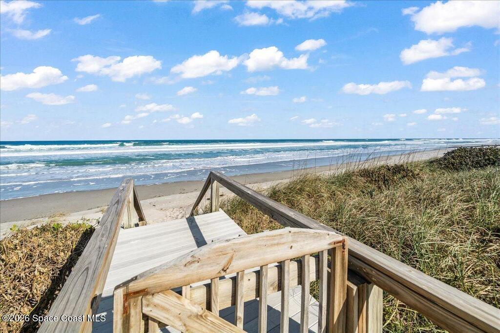 Completely remodeled oceanfront townhome-style retreat in the heart of Melbourne Beach, offering sweeping Atlantic views and an exceptional coastal setting. Located within one of the few true oceanfront communities along the Space Coast that allows short-term rentals, this property presents a compelling opportunity for both refined personal use and income potential. Renovated in 2024 with a new kitchen featuring soft-close KraftMaid cabinetry, expansive pantry, stainless steel appliances, new flooring, updated bathrooms, lighting, fans, and window treatments throughout. Major upgrades include a new HVAC system (2023), updated electrical panel, wiring for a whole-house generator, and electric vehicle charging capability. The first-floor bedroom and bath open directly to the beach, while the primary suite offers dual closets and a beautifully updated bath. Community features newer tile roofs and rebuilt beach crossovers. A rare blend of oceanfront lifestyle and turnkey condition.
