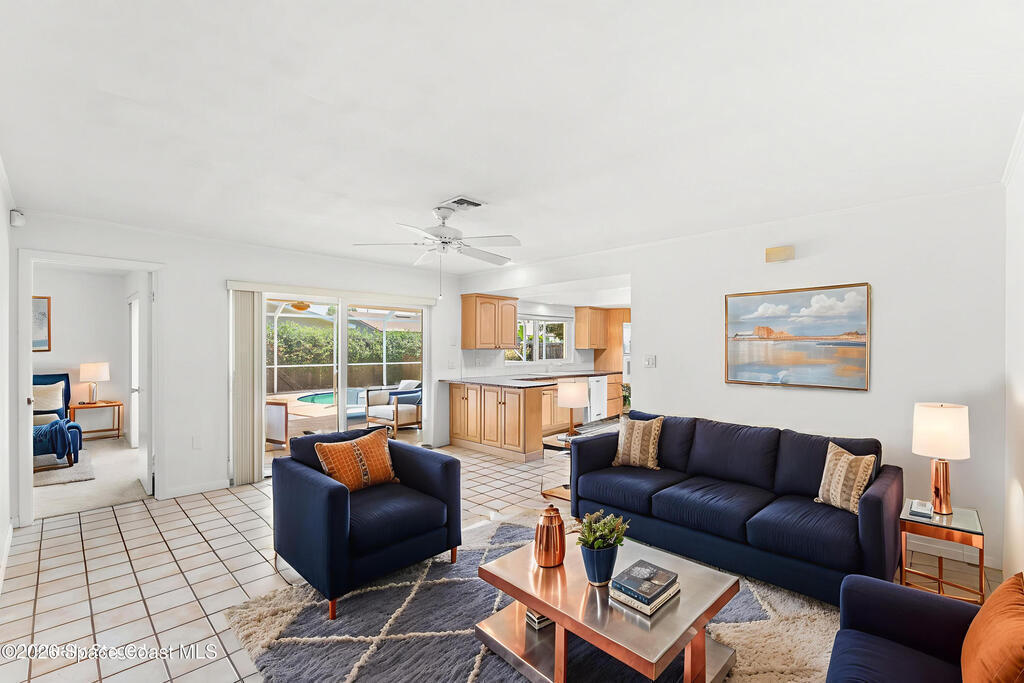 Just a breezy 4-minute bike ride from the beach, this sun-soaked property is a true coastal playground with serious short-term rental potential! Behind impact-rated windows & a durable tile roof, freshly painted interiors set a bright, welcoming tone, complemented by new under slab plumbing for added peace of mind. The layout blends form & function with formal living & dining rooms, a relaxed family room opening to the pool, & a well-appointed kitchen featuring granite countertops, a wall oven, stacked microwave, electric cooktop, a brand-new refrigerator, & sunny breakfast nook. Step through the sliders & into your private backyard oasis--complete with a heated saltwater pool featuring a new chlorine-free salt system, expansive screened lanai, & two sheds for added storage. The owner's suite boasts its own slider to the pool, walk-in closet, & en suite bath, while a pocket door smartly separates two generously sized guest bedrooms & a delightfully retro second bath. New Washer/Dryer.