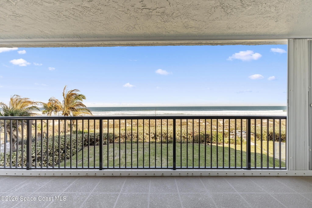 Oceanfront paradise! This 3 bedroom 2 bath condo is one of only 27 units located directly on the oceanfront. Located on the Northeast corner it shares only one neighbor and unobstructed views of the beach and oceanfront. Upgrades include windows, painting, tile flooring and engineered hardwood, kitchen, and more! Unit has reverse osmosis advanced drinking water filtration system. All units have one garage space with small storage area. The master has direct access to the balcony for coffee and sunrises! There is also a back balcony connected to the two guest bedrooms which has views of the Indian River Lagoon. The front entry way has a gorgeous frame tray ceiling. Kitchen has stainless steel appliances and movable granite island. Hurricane Shutters installed in 2022. The Condo has access to community pool, rec room, and beach access. Minutes to many restaurants and famous downtown Cocoa Beach. Come see what could be your oceanfront getaway!