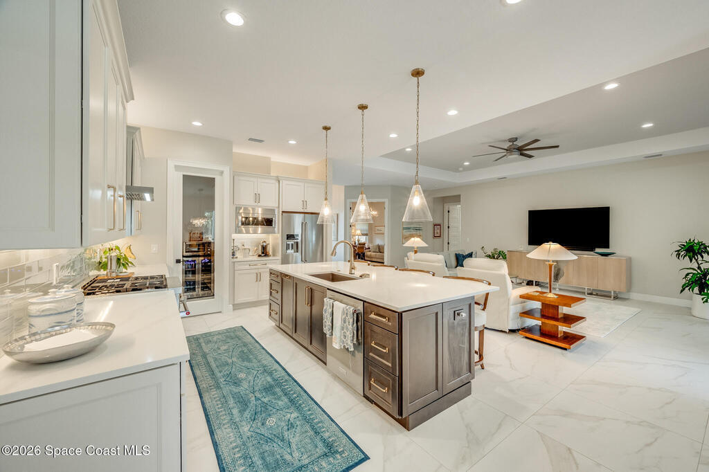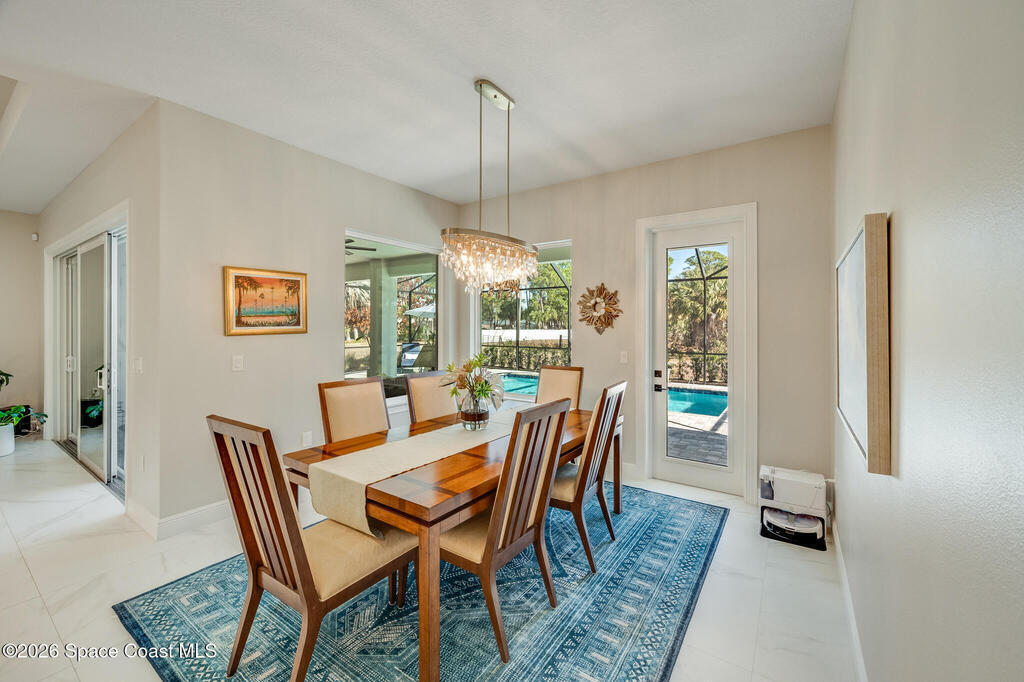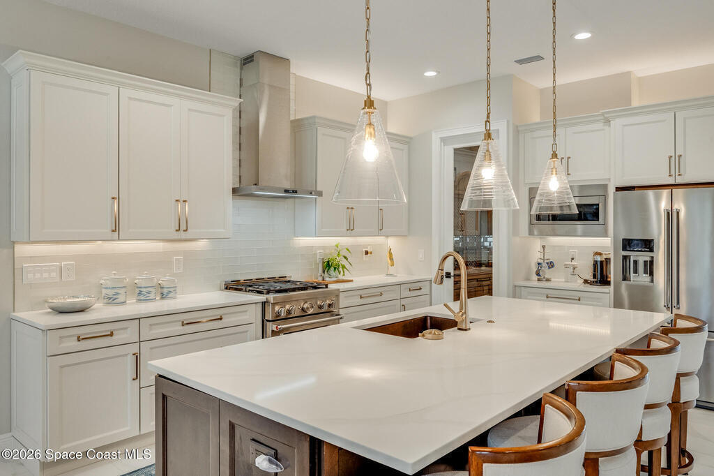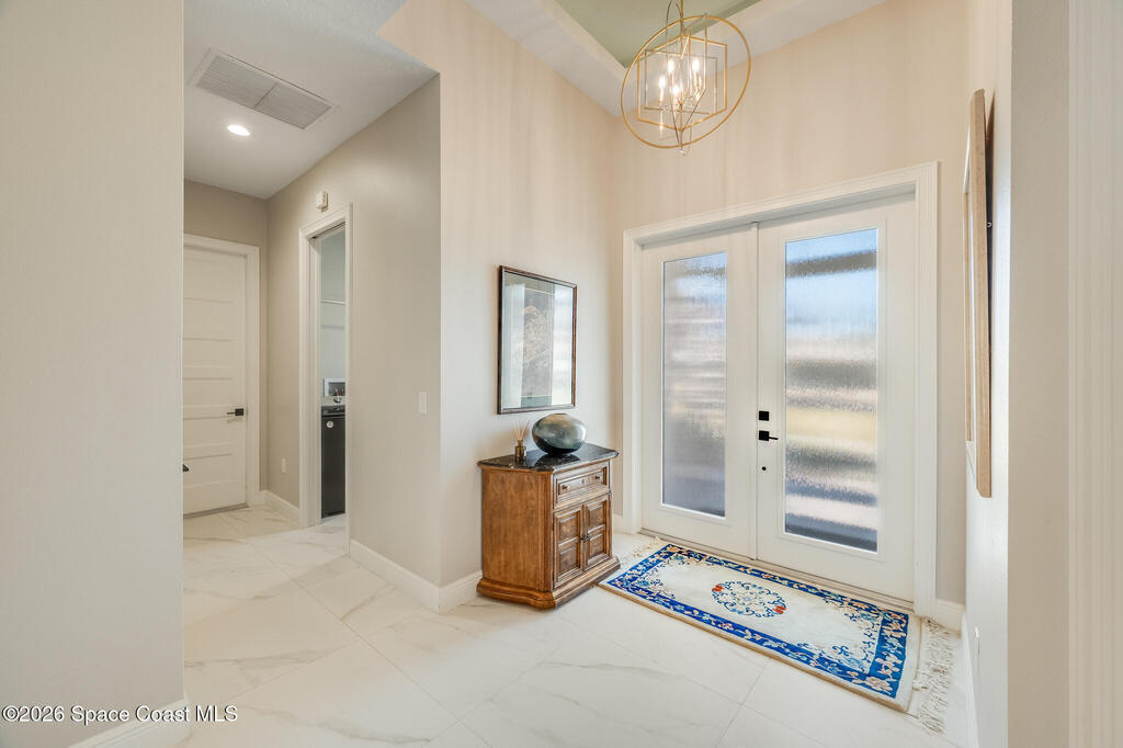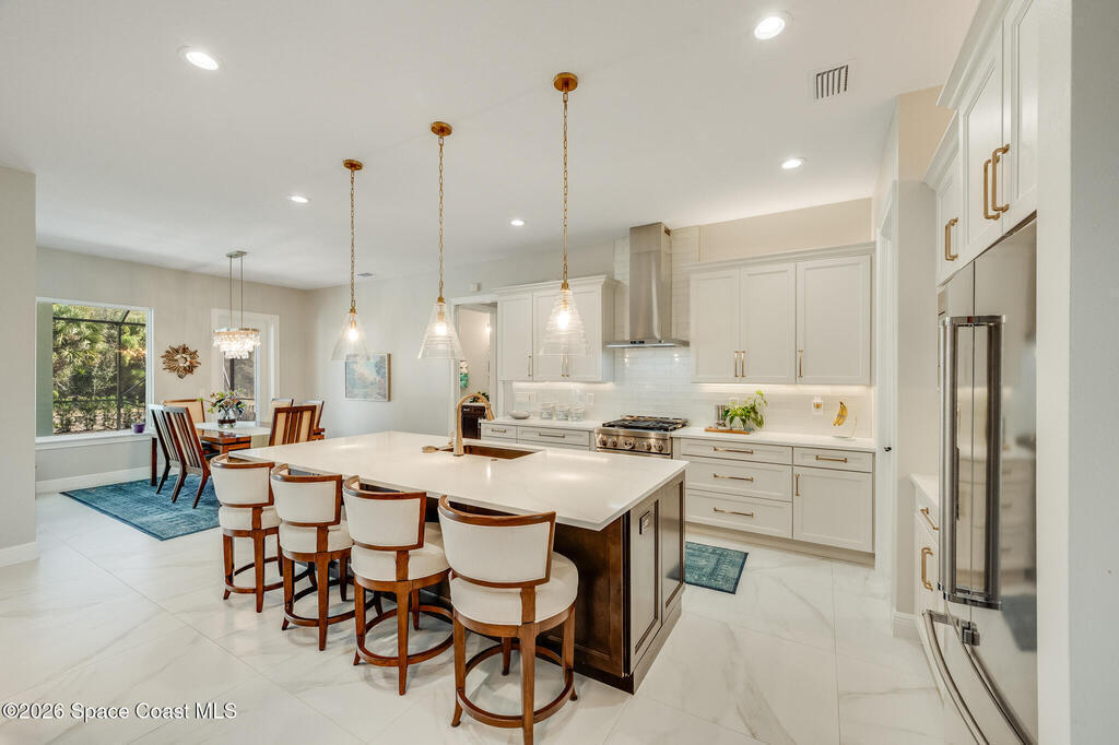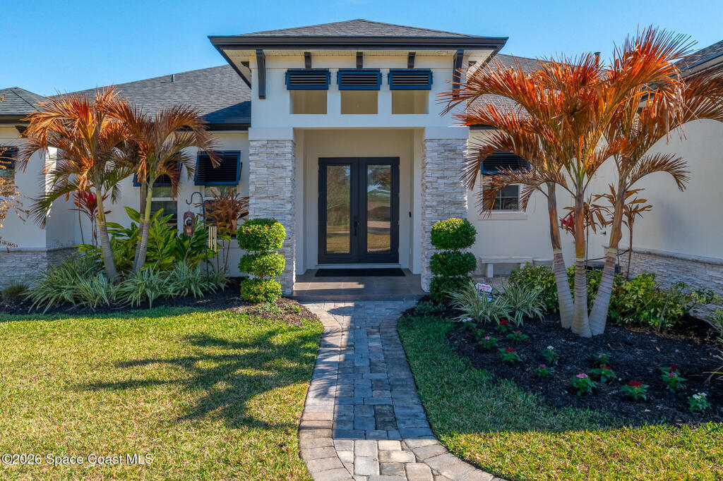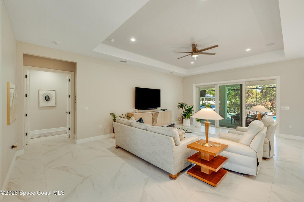 This newly built custom home exudes quality craftsmanship and subtle sophistication for those seeking quiet comfort, safety, and effortless entertaining. Soaring ceilings, oversized windows, and expansive, light-filled spaces create an airy and open ambiance, while hurricane impact doors and windows provide true peace of mind. This dream home features an open-concept great room and chef's kitchen that flows effortlessly outdoors to a private lanai with a screen enclosed and heated saltwater pool. The chef's kitchen boasts beautiful quartz countertops, a huge island, and an extra-large walk-in pantry. Porcelain tile flooring throughout the home ties the space together with timeless elegance. Designed with multigenerational living in mind, the home features two primary suites, one of which can easily convert to full wheelchair access--perfect for aging parents. Live well and entertain effortlessly in this newly constructed home while enjoying years of worry-free maintenance.