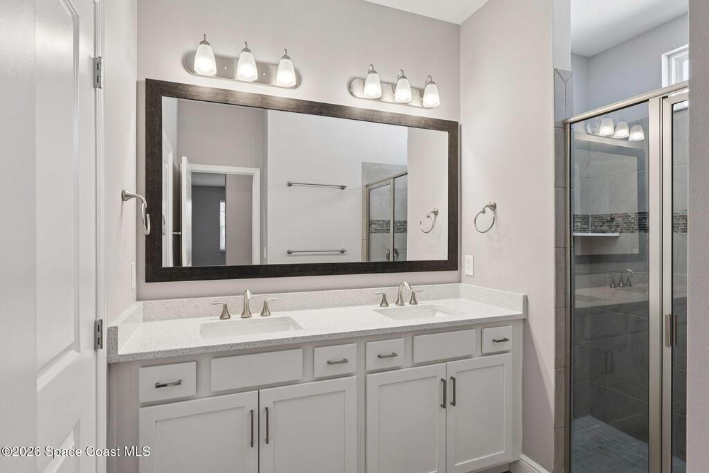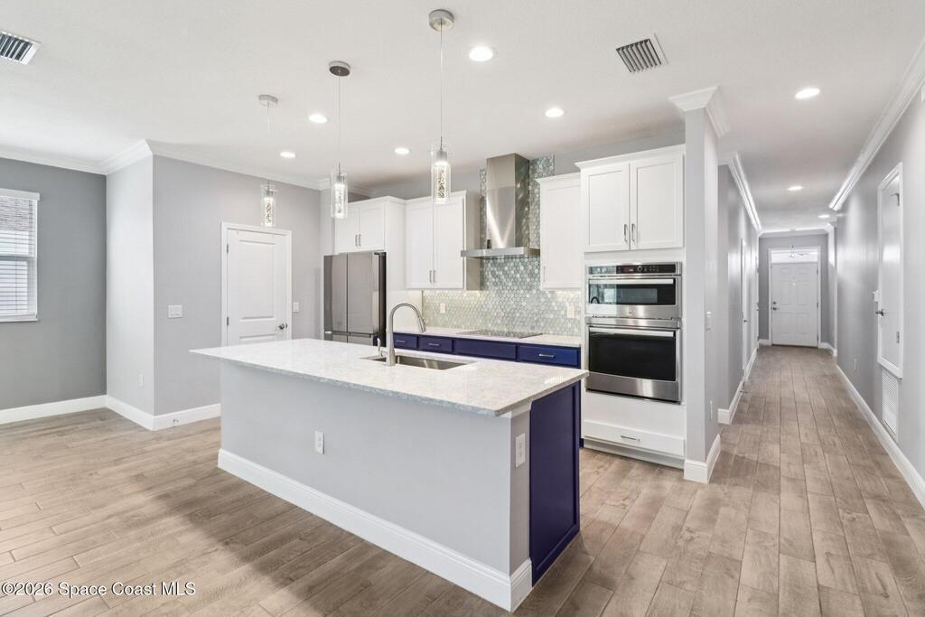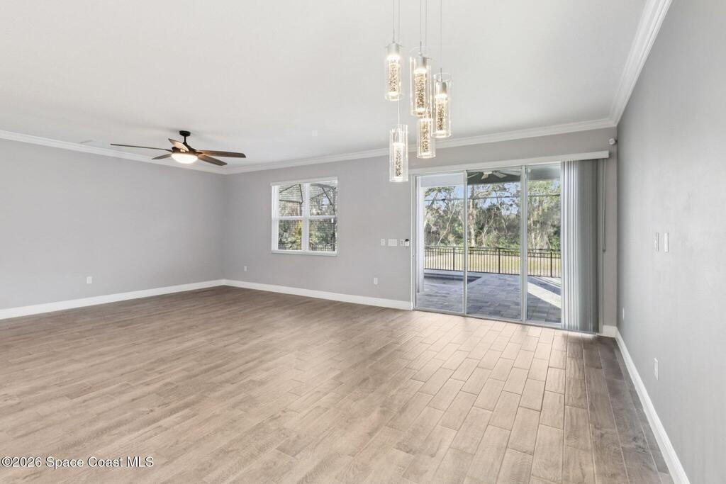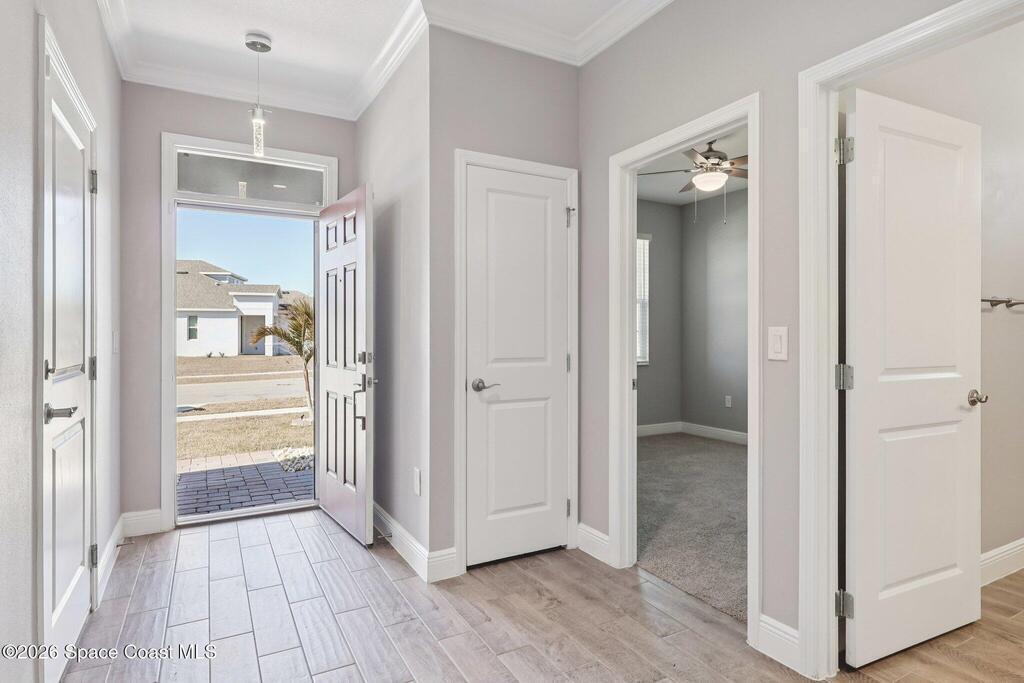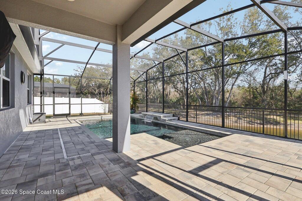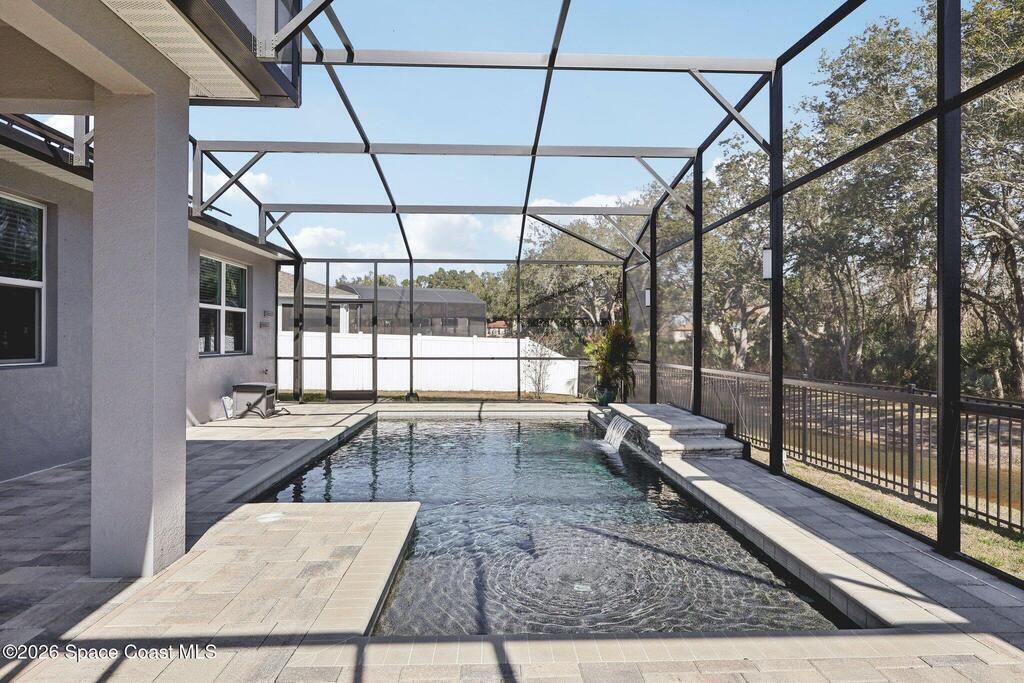 Beautifully upgraded and designed for ultimate Florida living, this 2023 built 4 bedroom, 2 bath home offers a modern open-concept layout on a private waterfront pond lot backing to a protected wildlife preserve, providing lasting privacy and peaceful views. Enjoy year round outdoor living with a resort style inground pool, perfect for relaxing or entertaining. Inside, the home features a gourmet kitchen with upgraded finishes, upgraded flooring, and energy-efficient construction. Paid-off solar panels add long-term value and efficiency. Conveniently located near major space industry employers, shopping, and dining, this home delivers luxury, comfort, and efficiency in one exceptional property.
