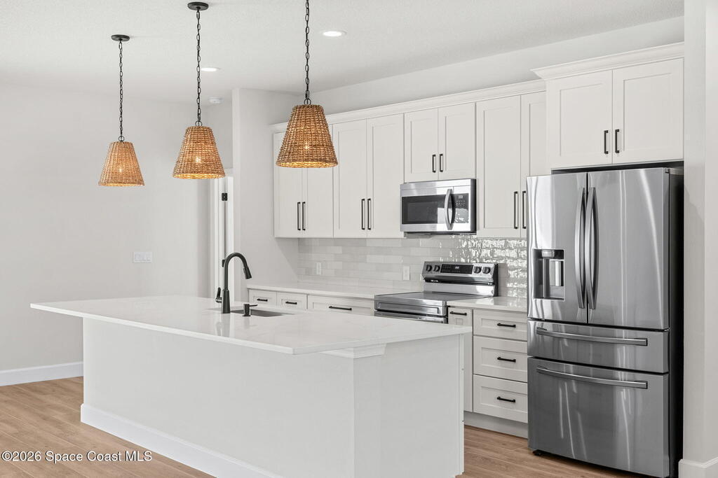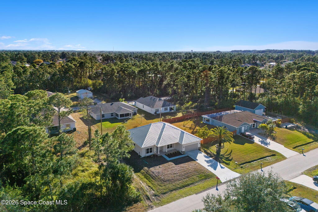 Brand new and built like a custom house, this Arianna model by a renowned local builder delivers 2,074 sq ft of premium, storm-smart design with 4 bedrooms, 2.5 baths, and zero HOA, pairing underground power, an impact-rated front door, impact-rated garage door, PGT impact windows, and an impact-rated sliding glass door for everyday confidence. A 24-ga standing seam metal roof secured with double straps and FORTIFIED Gold(tm) certification reinforces the home's most vulnerable points to help keep high winds, wind-driven rain, and storm pressures where they belong--outside--while wood-look tile throughout creates a clean, cohesive finish that's both polished and practical. The backyard is ready for a new pool with septic located in the NE corner of the front yard. Modern essentials stay dialed in with a tankless water heater plus city water paired with septic, making this new build feel elevated from the bones outward--simple, solid, and built for peace of mind.