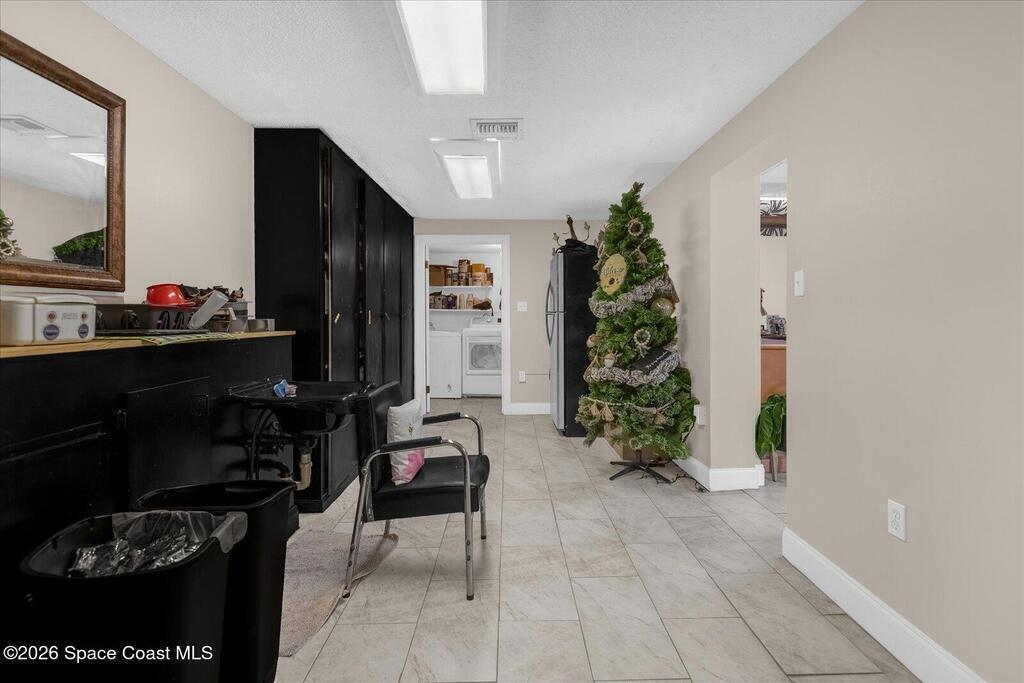 Commerical duplex in the downtown secondary area on the Garden Street beach corridor. Live in one side, work in the other! City council has approved drafting an ordinance for live/work units in the Office/Professional districts. New roof 2023, new paint 2024, 818 has a new HVAC 2025. Zoned OP (Office Professional) with a current building use of Retail. Both units are vacant. Unit 818 is approx 1100sqft featuring open lobby, 2 private rooms, bathroom & utility storage with washer/dryer hookup. Unit 822 is approx 800sqft featuring 2 rooms, open area, laundry with washer/dryer hookup & 2 restrooms. Formerly occupied as a hair salon with plumbing and sinks for wash stations. 818 was formerly occupied by multiple businesses and once was the owner's living quarters Walking distance to riverfront parks, shopping, 12 mile straight shot to Playlinda Beach & Cape Canaveral National Seashore. Some images virtually staged and AI enhanced. Buyer to verify all facts & uses with city & county.