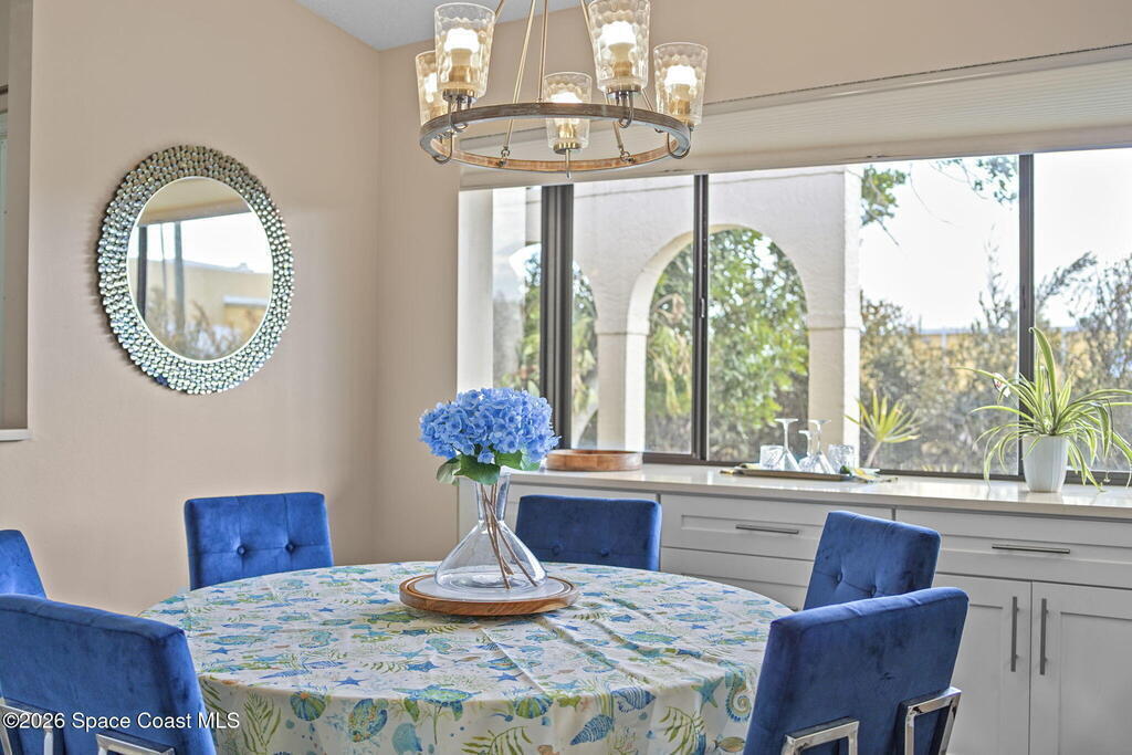 This sun-filled end-unit lives more like a home than a condo, featuring vaulted ceilings, skylights, and a private atrium that brings natural light into the center of the space throughout the day.The open great room with gas fireplace flows effortlessly from the eat-in kitchen with garden window, ideal for entertaining or relaxed everyday living. Large arched openings add architectural character while maintaining an airy, connected feel.The primary suite offers a walk-in closet, dual-sink bath, and an adjoining flex room perfect for an office, fitness area, or reading retreat overlooking the tennis courts. The guest bedroom features an attached bath with dual access from the hallway, creating privacy for visitors while remaining convenient for daily use.With three bedrooms, two baths, and a two-car attached garage, the layout offers the space and function of a single-family home while keeping the simplicity of low-maintenance living.Designed for easy Florida living,