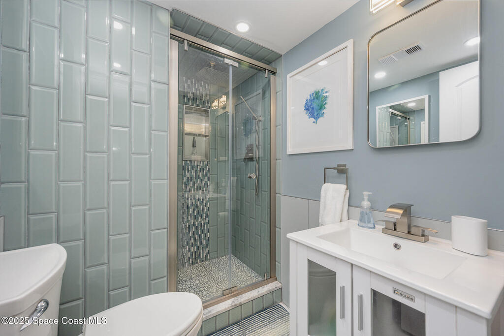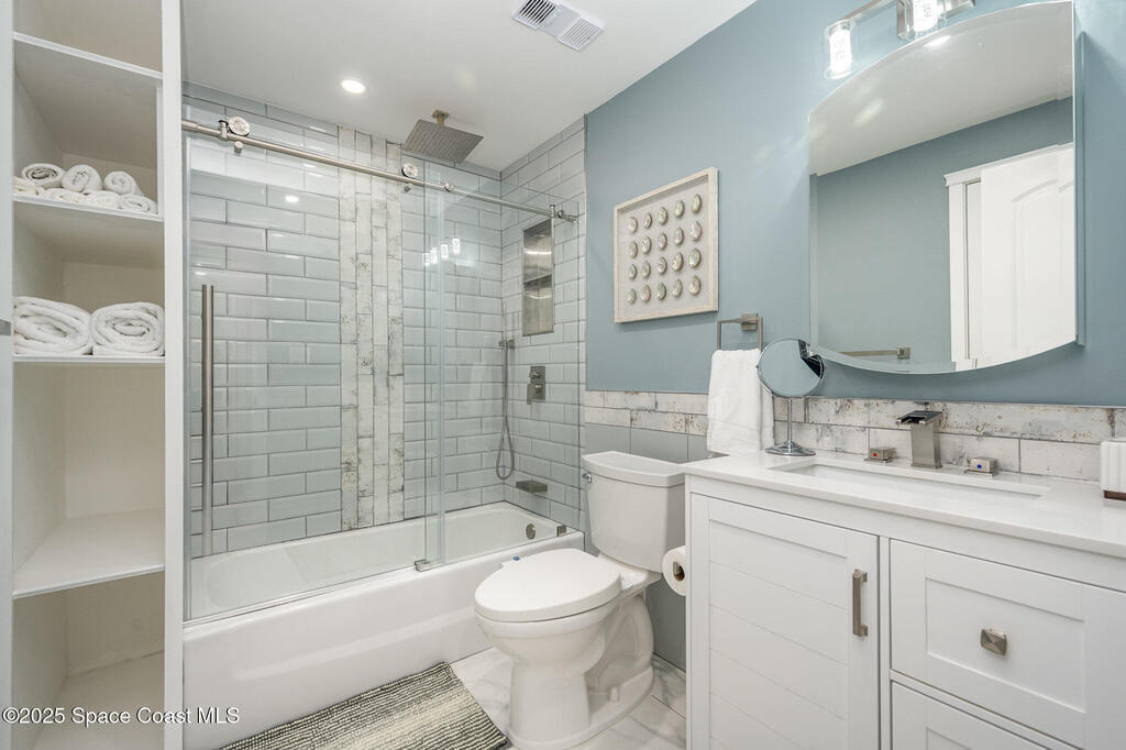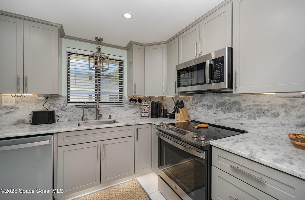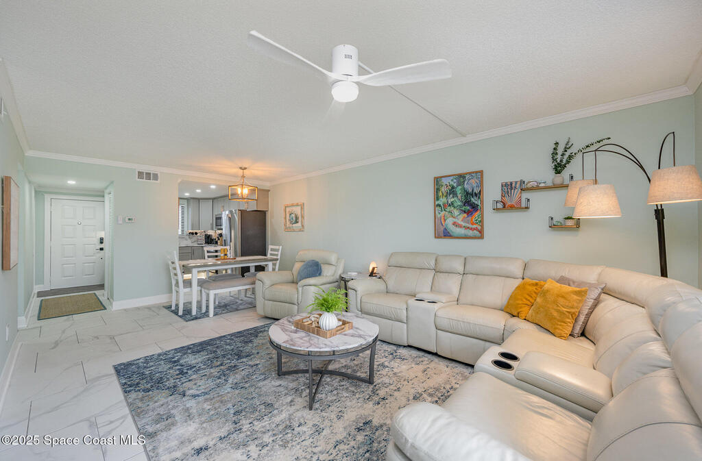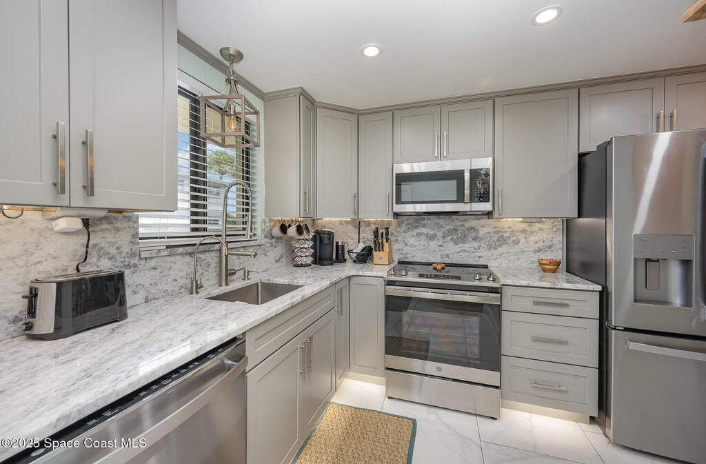 Enjoy Beachside Living at it's Best! Beautifully Remodeled 2 bd, 2 bath 1st floor condo is literally just Steps to the Beach. Renovated with touches of luxury including oversized tile floors throughout, new kitchen with granite countertops and stainless steel appliances, newly updated modern bathrooms, the primary bedroom even includes custom walk-in closest. A perfect home, winter retreat or makes a great investment property! Reverse Osmosis water system, Impact glass window, Roof 2022 and Low condo fees. Milestone inspection complete and no assessments. Enjoy walks on the beach, surfing, fishing or for an out-of-this-world experience, explore Kennedy Space Center just moments away. Nearby restaurants and entertainment for fun filled evenings. With easy access to Orlando's famed attractions such as Disney World and Universal Studios. Just minutes away from Port Canaveral, Cruise Terminals, Famous Cocoa Beach Pier & just 1 hour to Orlando Airport. Your Beachside Home Awaits!
