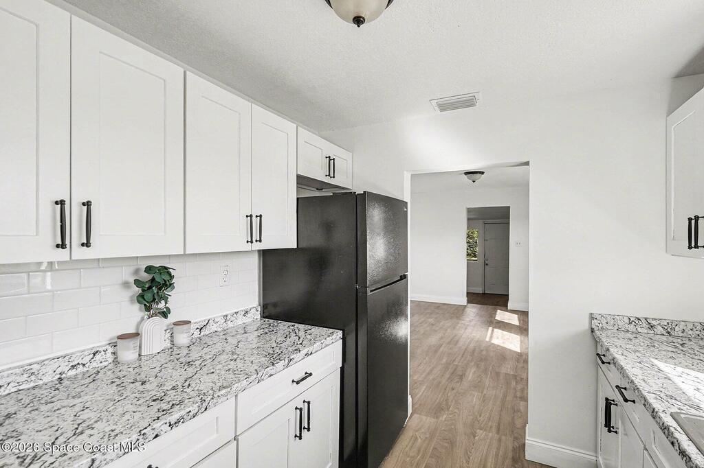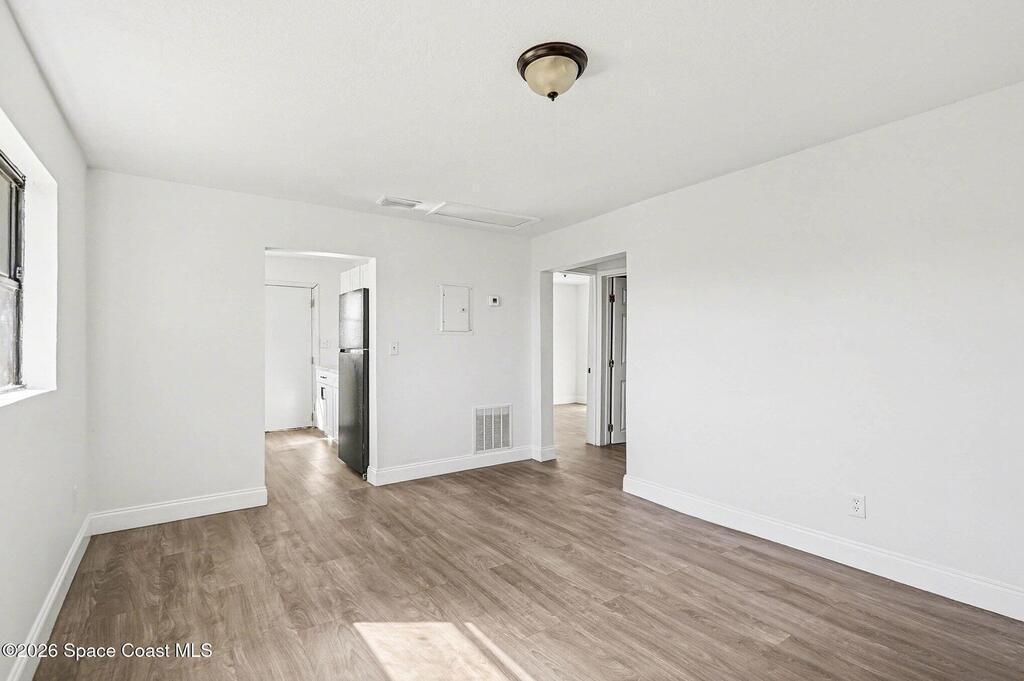 Check out this charming bungalow-style home just minutes from Cocoa Village. The .21‑acre lot features mature trees, a covered front porch perfect for morning coffee, and a covered carport. You're only 15 minutes from the beach and moments from Cocoa Riverfront Park.Inside, the home offers a bright kitchen and two comfortable living spaces. The bedrooms are spacious and include built‑in closet organizers. A modern bathroom and vinyl flooring throughout add to the home's appeal.