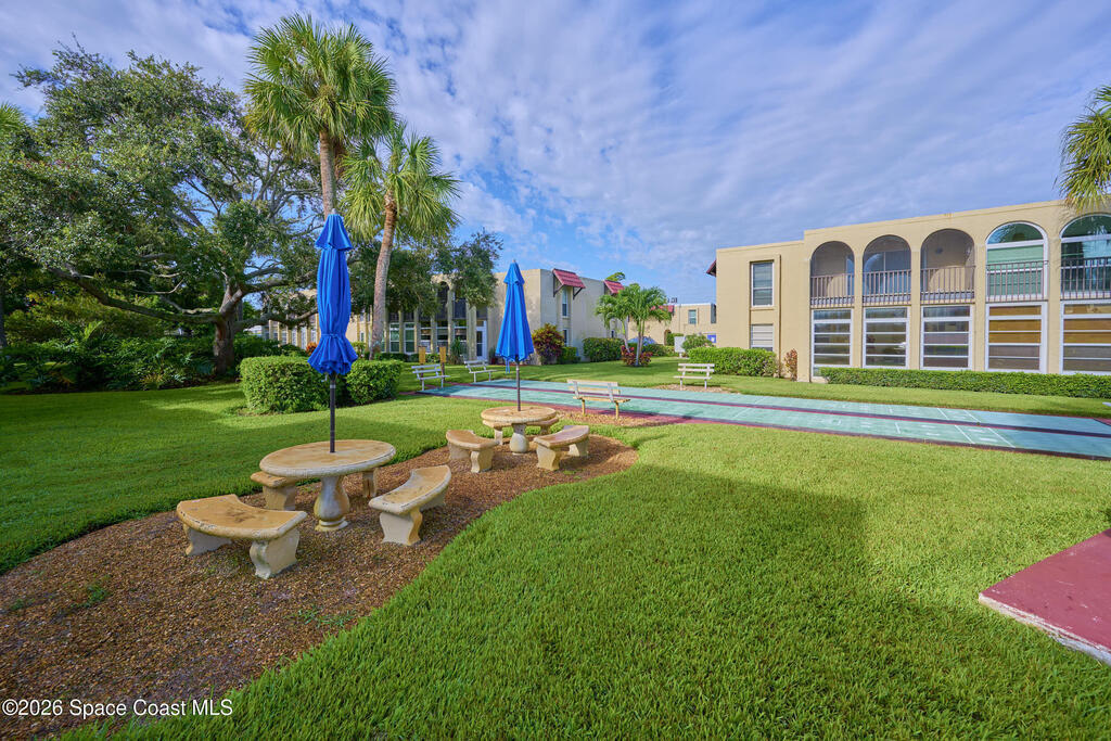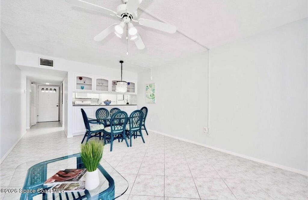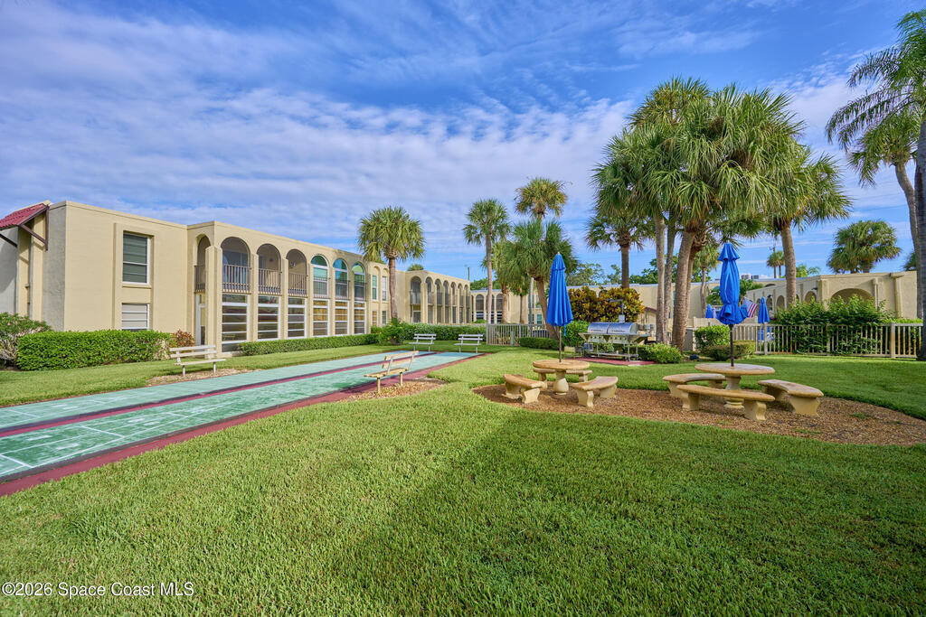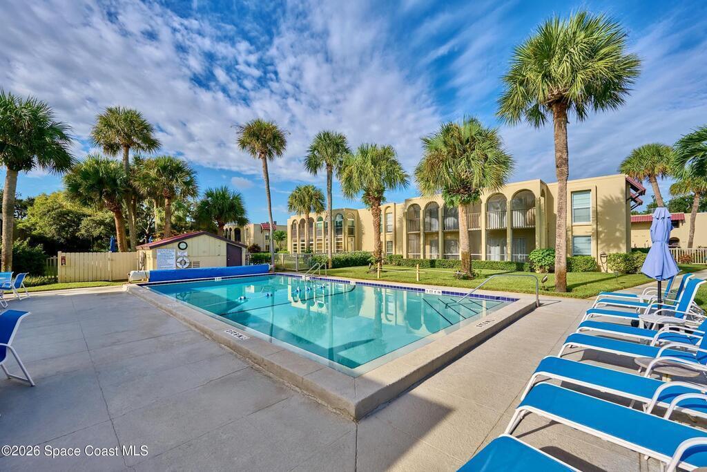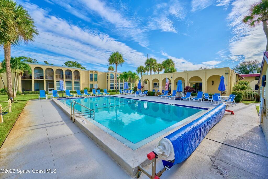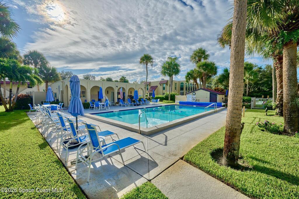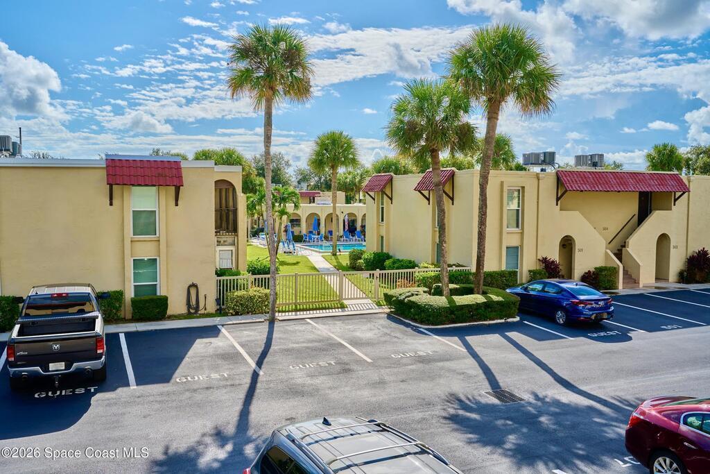 Approx 3 miles from Vero's stunning beaches. This 55+ 2BD/2BA 2nd-floor pied-a-terre is a wonderful lock-and-leave get-away or full time residency. The Condo's living/dining area channels vintage Palm Beach Glamour w/a modern twist-- teal blues, tropical greens and playful pops of pink create a look that's fresh and FABULOUSLY FUN. Bedrooms transition to a calm, serene palette, offering peaceful retreats. Diagonal Tile flooring in living areas and wet spaces. EXTRA Storage in dining area w/upper display cabs and large lower cabs. Enclosed lanai framed with arches feature textured-finished windows that filter in natural light while enhancing Privacy. COMMUNITY AMENITIES! Assigned parking/front of unit. LOCATION... ISLAND: Approx 3 miles to pristine beaches, boutiques, fine dining, galleries, Museum of Art, river access, and scenic parks. MAINLAND: eateries, cafes, big-box shopping, movie theaters, + medical care including Cleveland Clinic Hospital++. SEE CONDO COME TO LIFE - SEE VIDEO!!