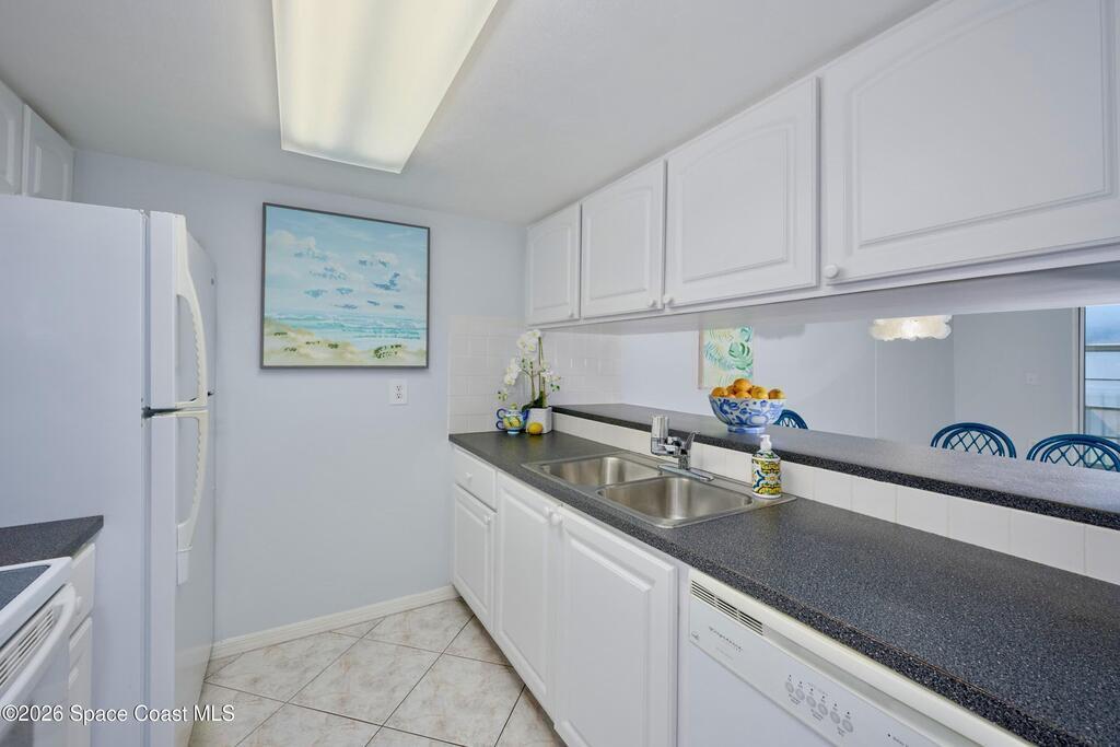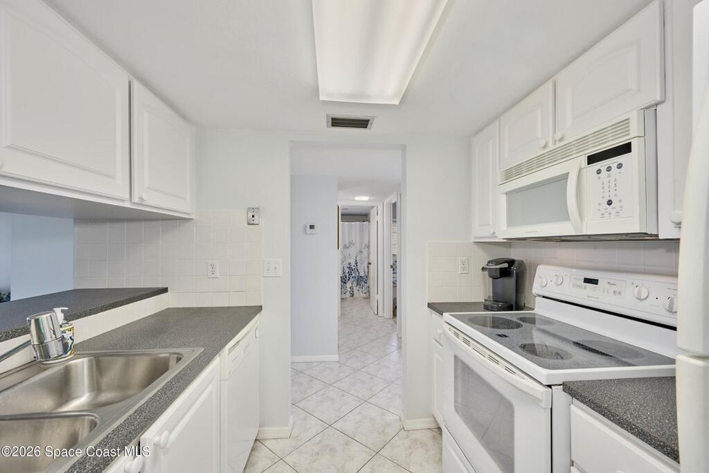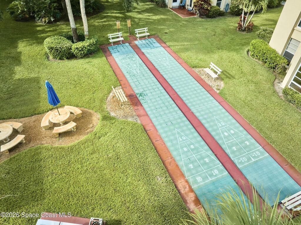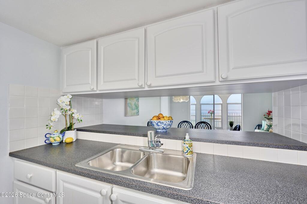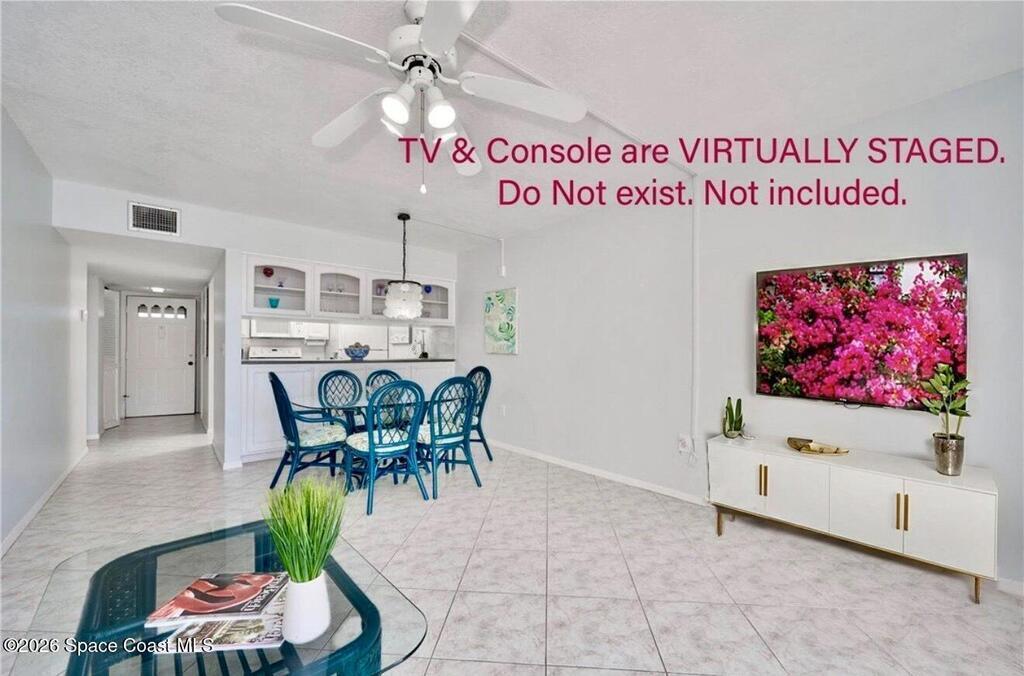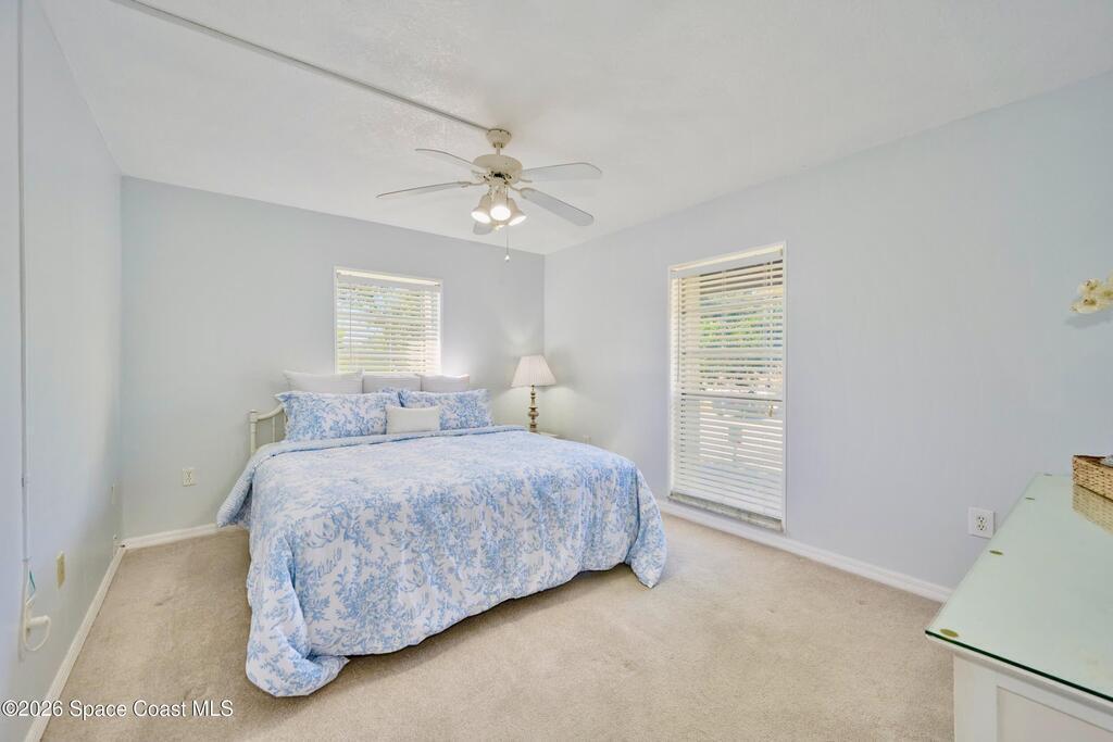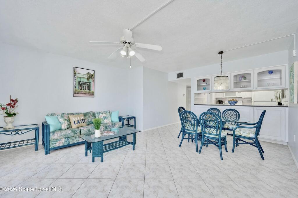 Approx 3 miles from Vero's stunning beaches. This 55+ 2BD/2BA 2nd-floor pied-a-terre is a wonderful lock-and-leave get-away or full time residency. The Condo's living/dining area channels vintage Palm Beach Glamour w/a modern twist-- teal blues, tropical greens and playful pops of pink create a look that's fresh and FABULOUSLY FUN. Bedrooms transition to a calm, serene palette, offering peaceful retreats. Diagonal Tile flooring in living areas and wet spaces. EXTRA Storage in dining area w/upper display cabs and large lower cabs. Enclosed lanai framed with arches feature textured-finished windows that filter in natural light while enhancing Privacy. COMMUNITY AMENITIES! Assigned parking/front of unit. LOCATION... ISLAND: Approx 3 miles to pristine beaches, boutiques, fine dining, galleries, Museum of Art, river access, and scenic parks. MAINLAND: eateries, cafes, big-box shopping, movie theaters, + medical care including Cleveland Clinic Hospital++. SEE CONDO COME TO LIFE - SEE VIDEO!!