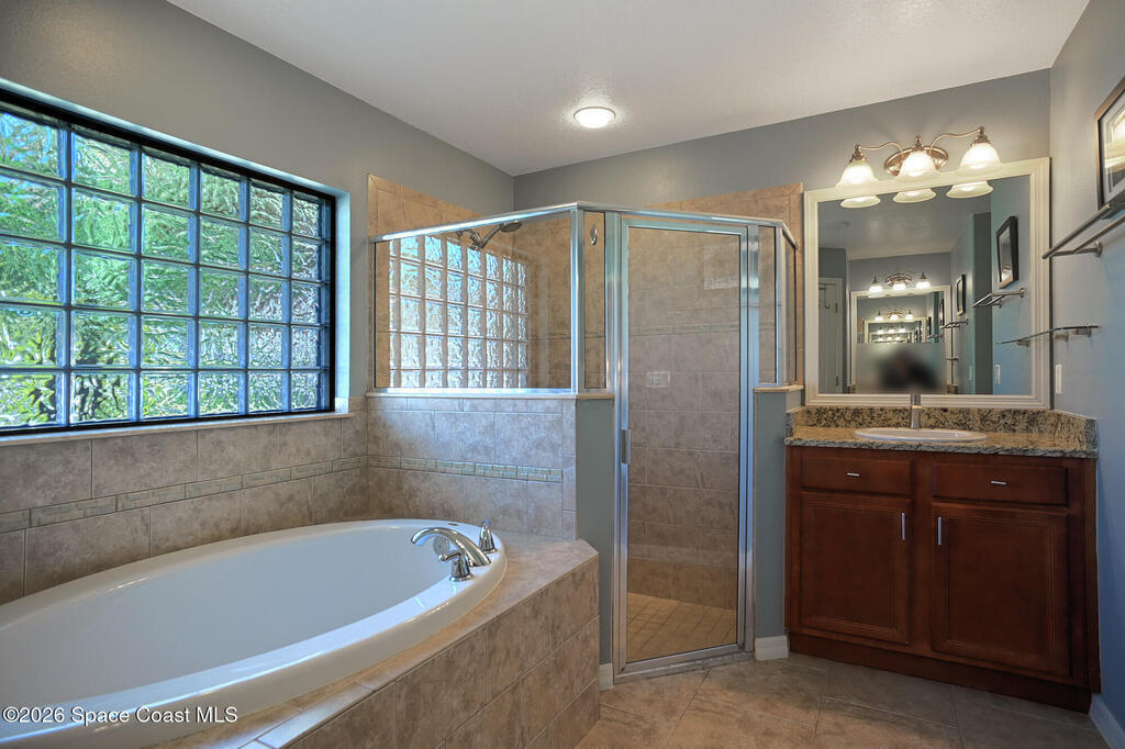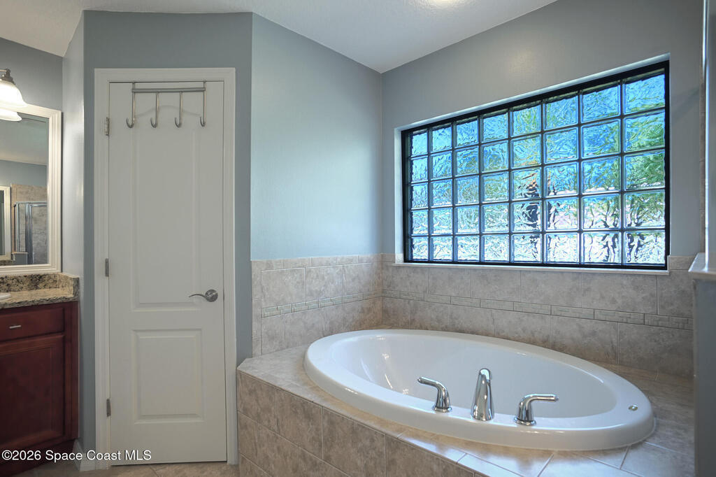 Breakfast Bar , Ceiling Fan(s) , His and Hers Closets , Primary Bathroom -Tub with Separate Shower , Split Bedrooms , Vaulted Ceiling(s) , Walk-In Closet(s)
