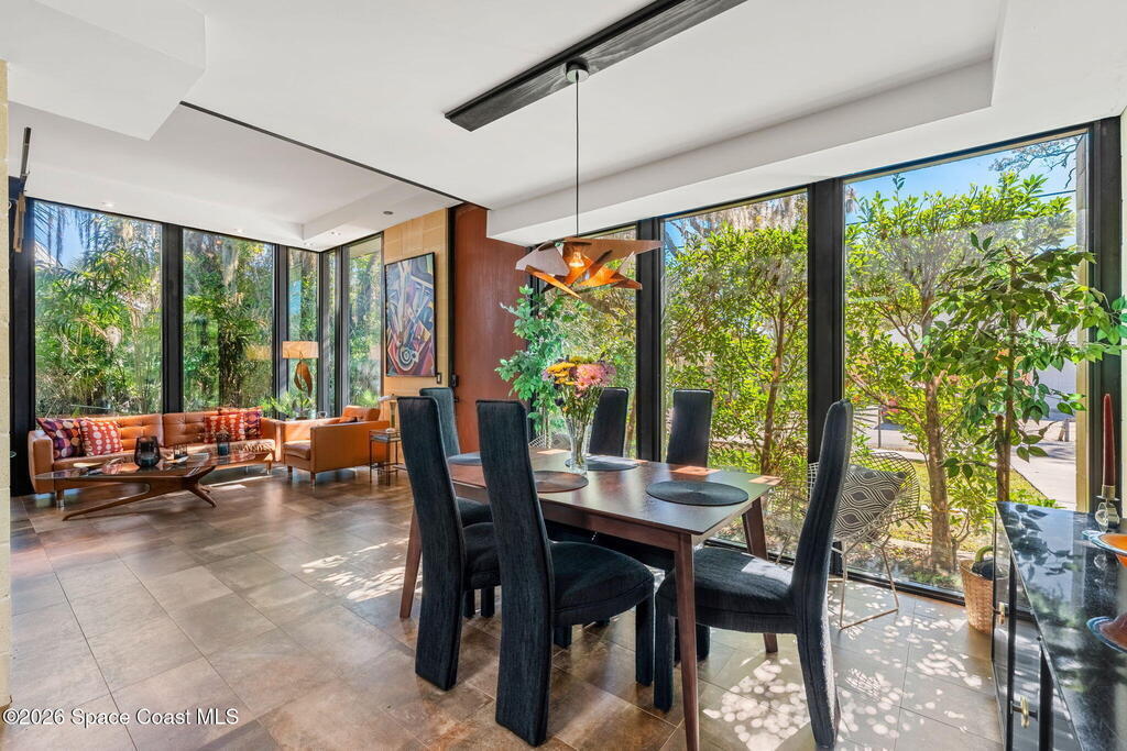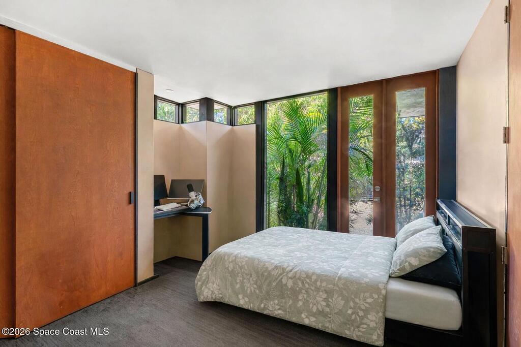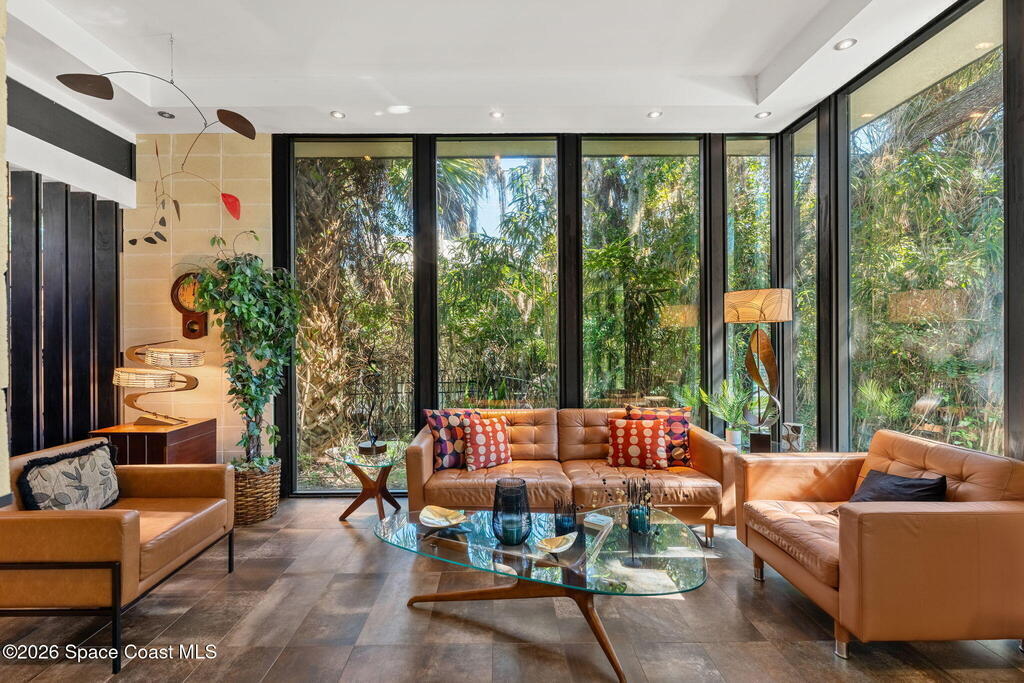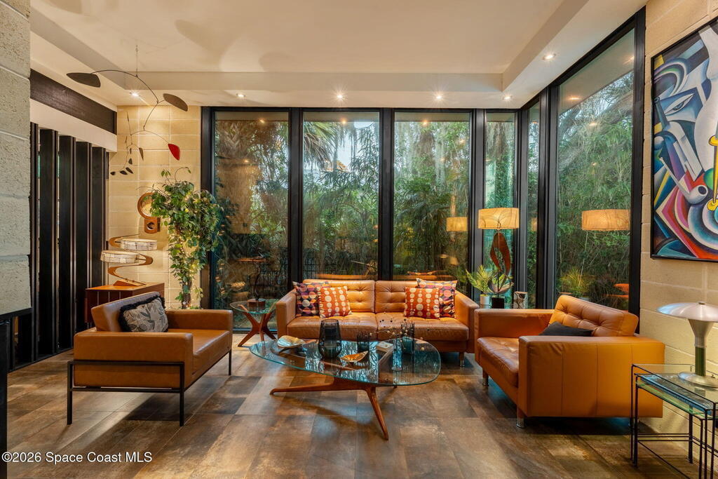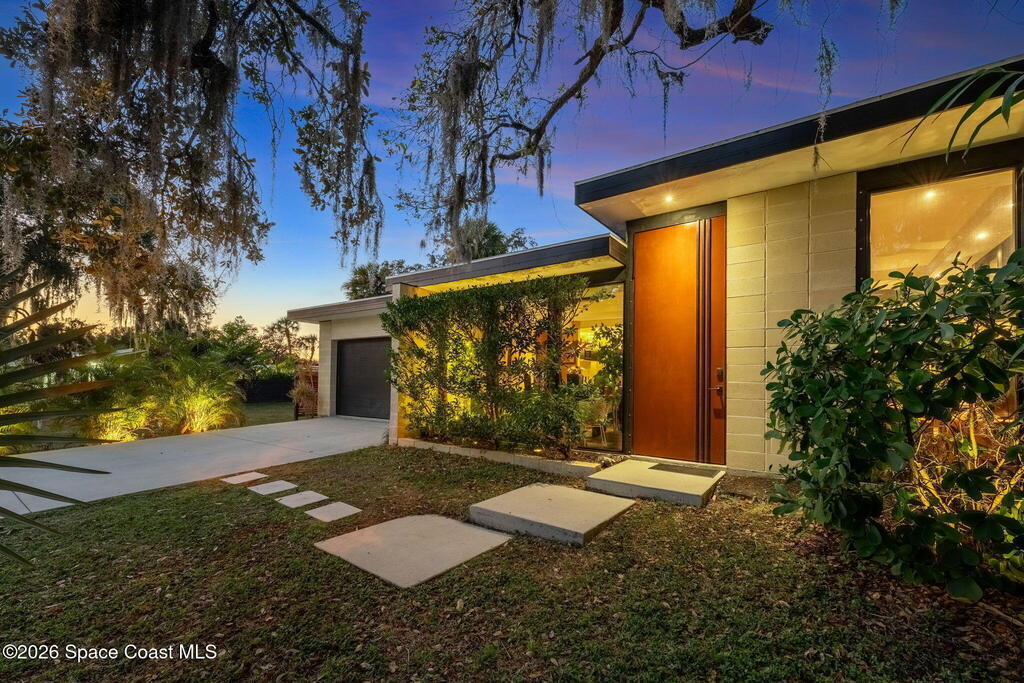 A true Mid-Century Modern masterpiece, this architect-designed residence is inspired by an unbuilt early-1950s Usonian design by Frank Lloyd Wright. Built in 2019, Ultra High Efficiency Smart Home. Re-engineered to meet current Broward Code standards, the home blends iconic Wright principles with modern performance, including enhanced wind resistance, energy efficiency, water conservation, and full smart-home technology. Expansive walls of glass reflect Wright's philosophy of bringing nature indoors, while the generous use of natural hardwoods adds warmth and organic character throughout. Construction techniques inspired by Wright's original methods create a sustainable, intentional design that feels both timeless and livable. Located in the historic Eau Gallie district and surrounded by charming vintage homes, this one-of-a-kind property is more than a residence-it is a living work of art where design, function, and history come together seamlessly.