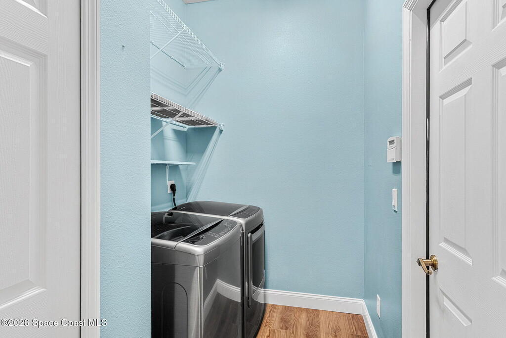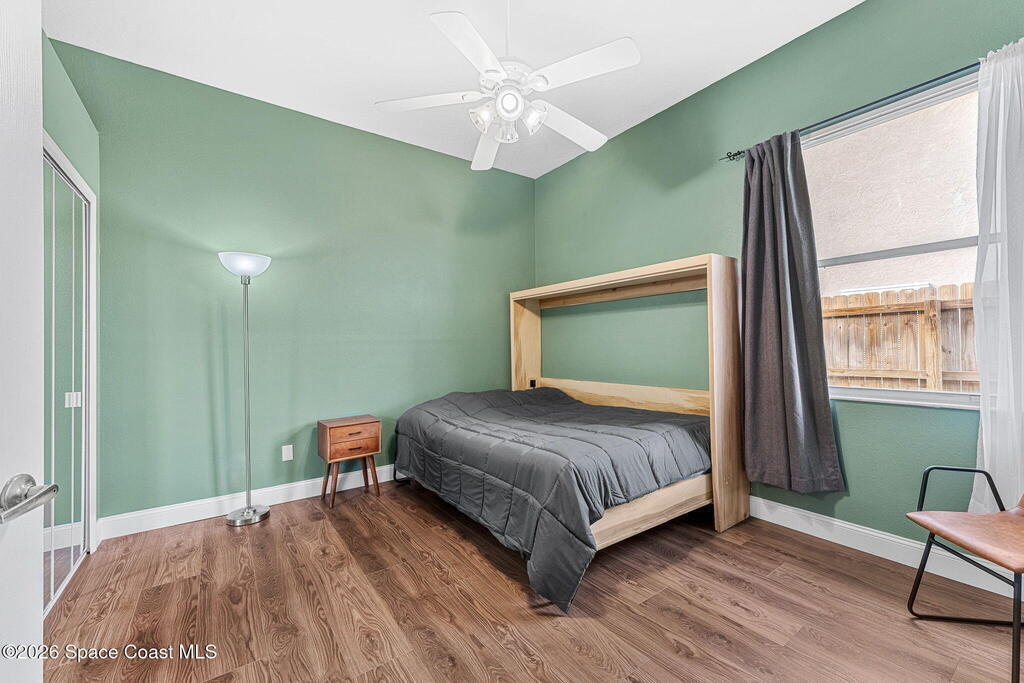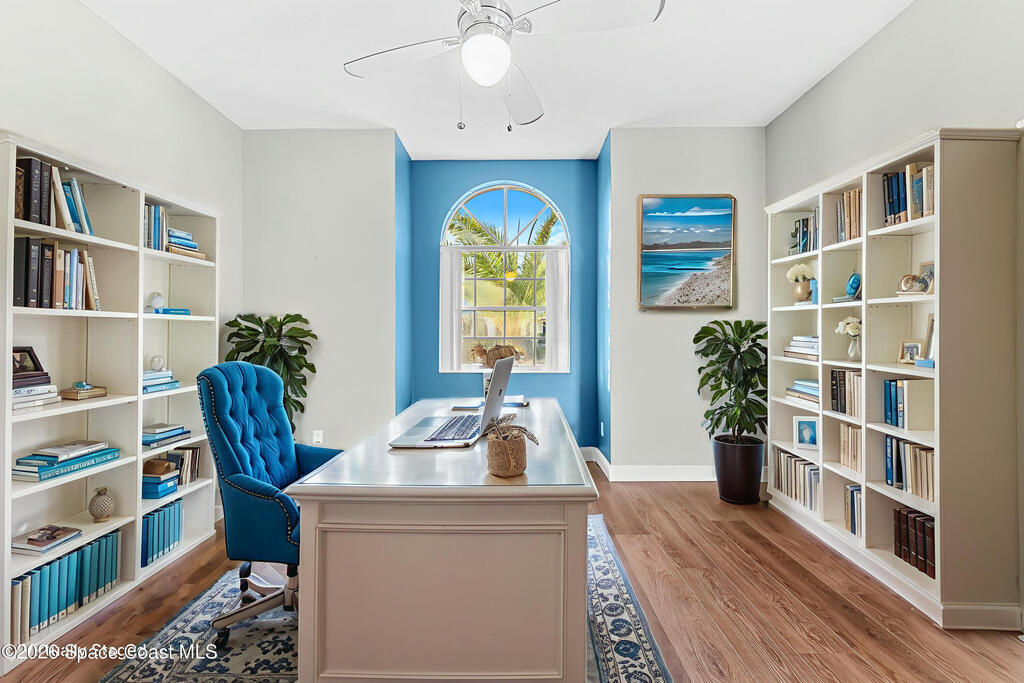 Located in the sought-after Brook Hollow community, this home offers a quiet, no thru-traffic setting backed up along the Malabar Scrub Sanctuary and surrounded by the trails and natural beauty of Turkey Creek Sanctuary, ideal for walking, biking, and kayaking. The spacious great-room layout is designed for everyday living, featuring 3BR/2BA, a dedicated office or den, and an expansive Florida room overlooking protected conservation land. Inside, the home has been refreshed with new flooring and baseboards. A custom-built living room entertainment wall adds character and functional storage, complemented by newer appliances, custom cabinet pull out shelving, updated hardware, and ceiling fans. The split-bedroom floor plan provides privacy, with a generous primary suite offering a spa tub, walk-in shower, and an oversized walk-in closet. Additional features include hurricane shutters and a generator-ready hookup, offering peace of mind and flexibility for future needs. Out back,