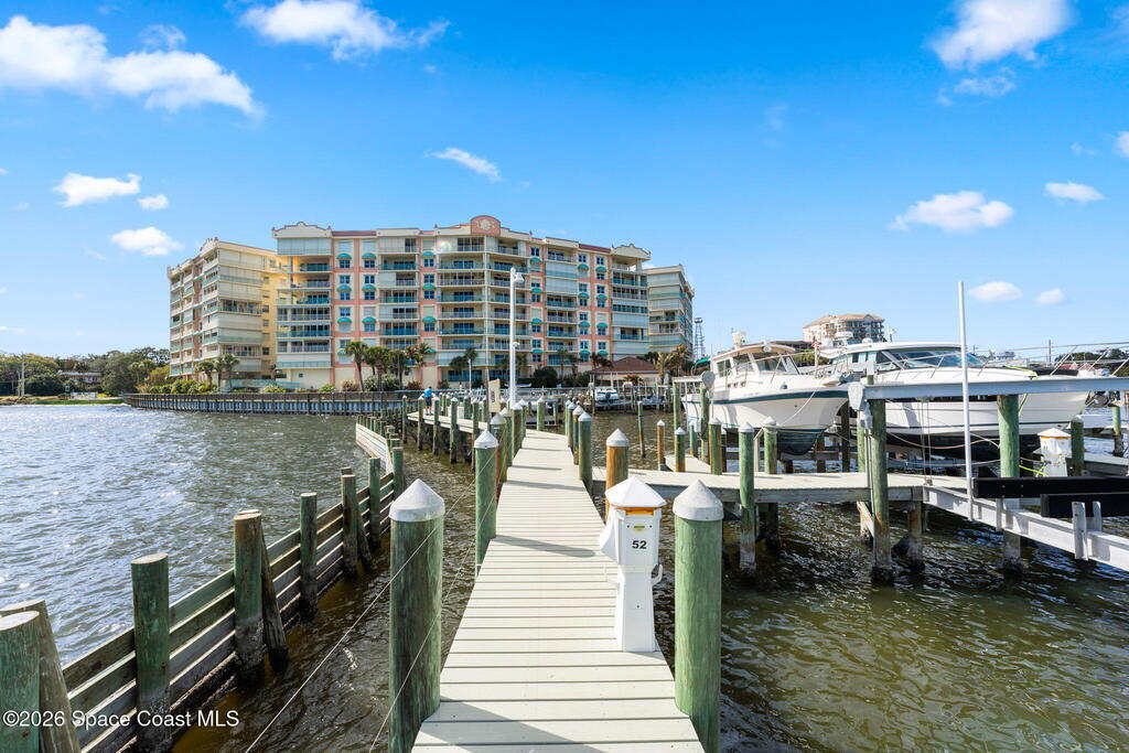 Waterfront living with a front-row seat to the Indian River. This is the kind of place people wish they found sooner. This 2-bedroom, 2-bath condo offers an easy, open floor plan with tile and carpet throughout, a cozy breakfast nook for morning coffee, and a smart split-bedroom layout that gives everyone their own space. Walk-in closets, a private single-car garage which is a rare bonus, accordion storm shutters, and peaceful river views set the tone for relaxed coastal living. A smart thermostat adds modern comfort and efficiency.Located in a charming historic area, this condo community delivers more than just a great place to live. Enjoy an impressive lineup of amenities along with an active social committee that keeps the calendar full of events and gatherings. Just a ten-minute walk to historic Cocoa Village, you can enjoy waterfront sunrises, river breezes, local shops, dining, and neighbors who quickly feel like friends.