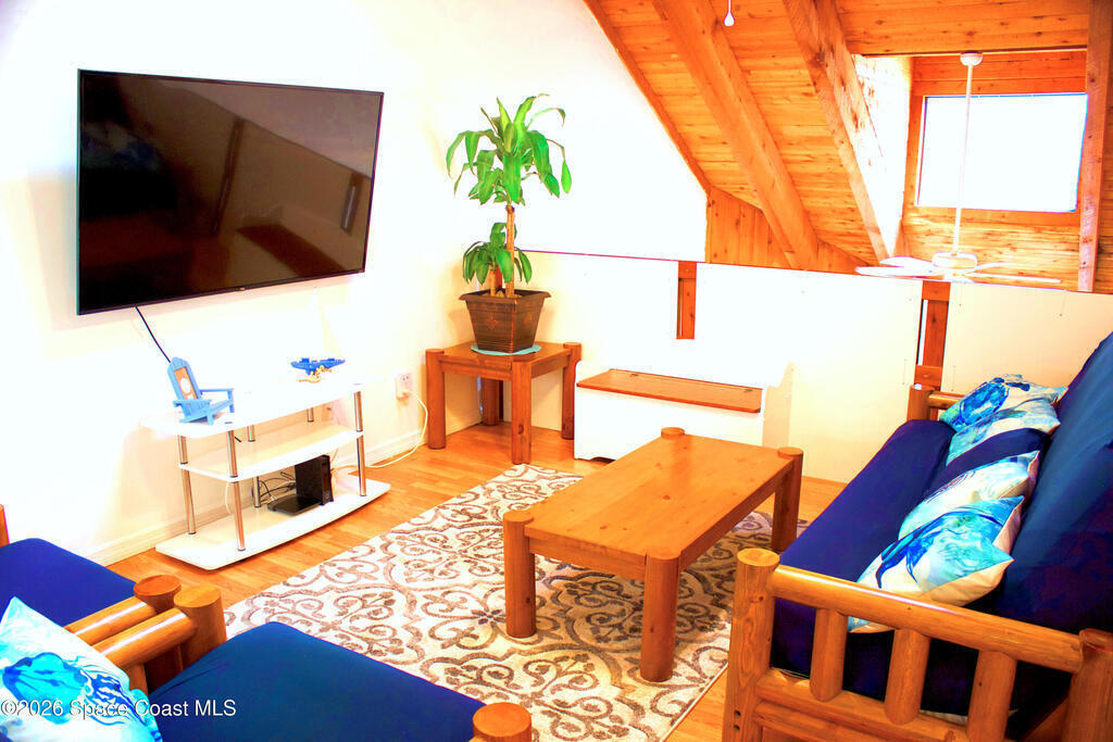 AMAZING DEAL! ALL INCLUSIVE HOME:~BEACHSIDE FURNISHED TOWNHOME! ~NEWER ROOF! ~NEWER HURRICANE-RATED GLASS! ~NEWER HVAC, WATER HEATER, APPLIANCES!~MARBLE COUNTER TOPS!~FIREPLACE!~NO HOA!~SLEEPS 10: ~2 MASTER BEDROOMS: 1 KING BED, 2 QUEEN BEDS! ~LOFT: 2 FULL-SIZE FUTONS, 2 HALF-SIZE FUTONS!~FLAT SCREEN TVs in EVERY ROOM!~READY to LIVE IN or TURN-KEY RENTAL (Airbnb, etc)!One of a kind, hidden treasure with beautiful woodwork found nestled just a few blocks from beach and park. Cozy and inviting interior with impressive, wood-laden, vaulted ceiling that must be experienced in person to fully appreciate. Conveniently located beachside of A1A, so there's no busy highway between you and ocean bliss. Close to cruise ships, NASA/Kennedy Space Center, Cocoa Beach Pier, top schools, restaurants, fun activities and more! INCLUDED: All Furnishings & Appliances. 2 Parking Spaces+. Private Backyard. Home is Ready to Go and 5-Star Rated on Airbnb! Won't Last!