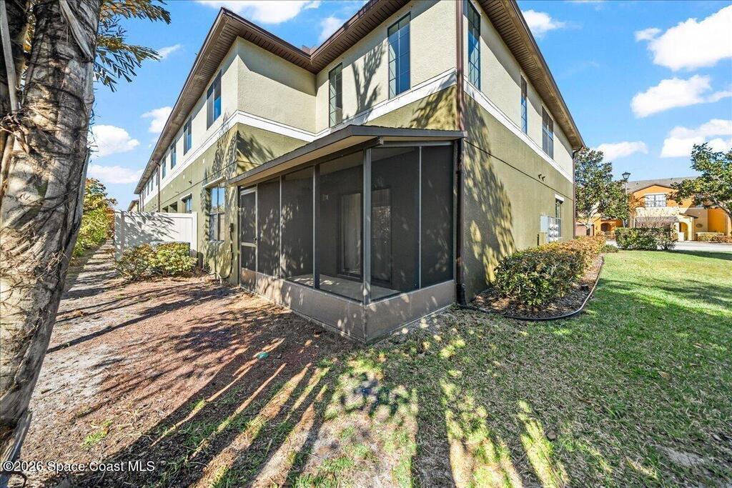 Ready for your 'right-size'' home. This immaculate, 1,975 sq. ft. end-unit townhome offers the perfect blend of single-story convenience with two-story space. The heart of this home is the spacious Ground Floor Master Suite, allowing you to age in place comfortably without sacrificing privacy. The open, airy floor plan features soaring 2-story ceilings, neutral tile, and a private screened porch perfect for your morning coffee. The kitchen is ready for entertaining with 42'' cabinets, granite counters and a breakfast bar. Upstairs, you'll find a beautiful Java Teak staircase leading to a massive loft-style living area. It is the ideal ''Flex Space''--use it as a second TV room, a grand-kids' play zone, or a dedicated home office. Two additional bedrooms and a full bath create a private retreat for visitors, so you stay downstairs while they have their own space up top! Stop worrying about bills and maintenance! The $452/mo HOA fee is a powerhouse of value.