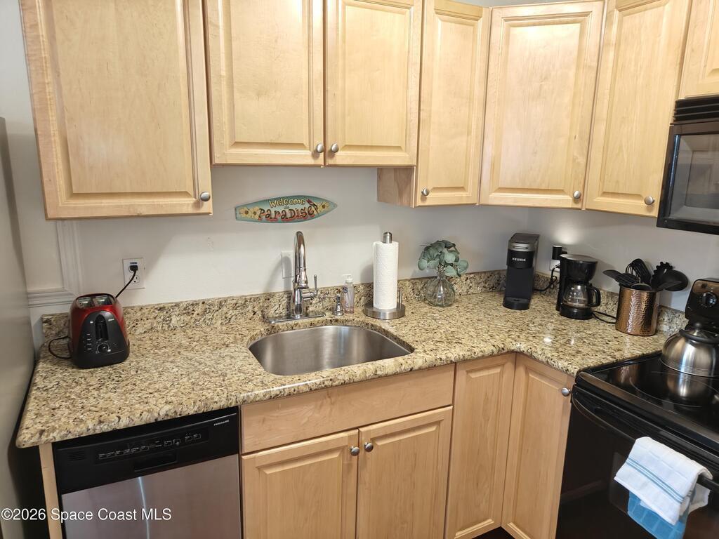 TURNKEY! Fully furnished, updated 2nd floor 1 bed 1 bath condo 3 blocks from the beach overlooking the sparkling pool! Great location to beach, port, shops, restaurants. **30 DAY MIN RENTAL** 2 Pets up to 40lbs. Perfect for investor, vacation, or permanent home. Move right in for beachside living soak up the sun and surf. Featuring storm shutters, granite countertops, custom kitchen cabinets, stainless refrigerator, stove, built in microwave, dishwasher, and garbage disposal. Updated bathroom vanity, toilet, tiled tub/shower, Laminate floors, plantation blinds. HVAC 2021 with 10-yr warranty. New water heater, Roof replaced 2019. Balcony refurbished 2026, Building renovated in 2006 with updated electrical panels and pipes. HOA fee includes pool, water, trash, structure maintenance, FREE laundry Each level. Assigned parking space for 2 vehicles. Includes all Furnishings, 2 Queen, 1 adjustable, 1 pull out, 2 TVs, decorations, curtains, linens, towels, kitchenware, accessories.