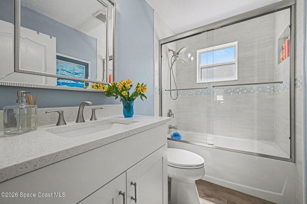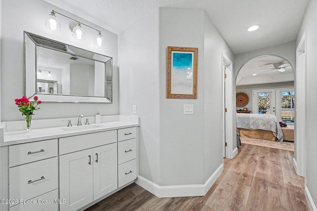 Look no further if you are wanting to live in a golfing community on the 15th Hole with a low HOA fee, surrounded by nature and Florida's wildlife. This home was COMPLETELY and lovingly renovated and updated from 2021 - 2025, including some outdoor features- brand new exterior paint, pool screen area and pool pump, resurfaced pool deck, and aluminum fence. Tastefully remodeled to include a gourmet style kitchen with ample room for all of your cooking and kitchenware supplies, appliances, all three bathrooms, interior paint and ceilings, flooring, fireplace mantel with quartz facing, quartz countertops throughout, & French doors. Whole house Generac Guardian 16kW generator with 200 amp transfer switch. The Space Coast Golf Club is close by offering 18 holes of golf, a bar and grille and golf shop - also open to the public. This community is close to international airports, Kennedy Space Center, numerous parks including Kars Park, Mitchell Ellington Park and Brevard beaches.