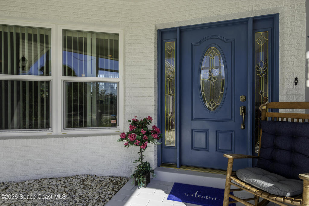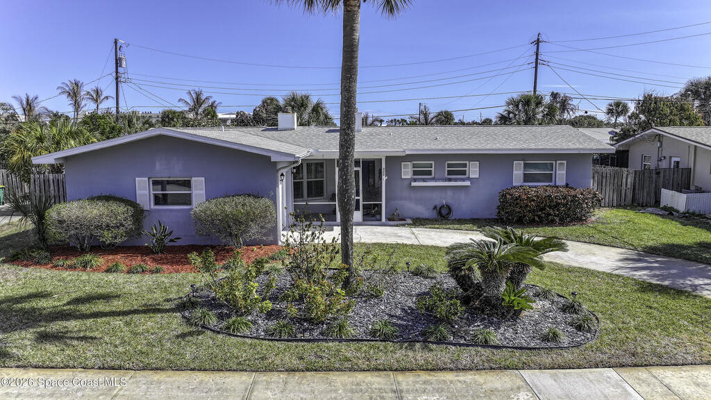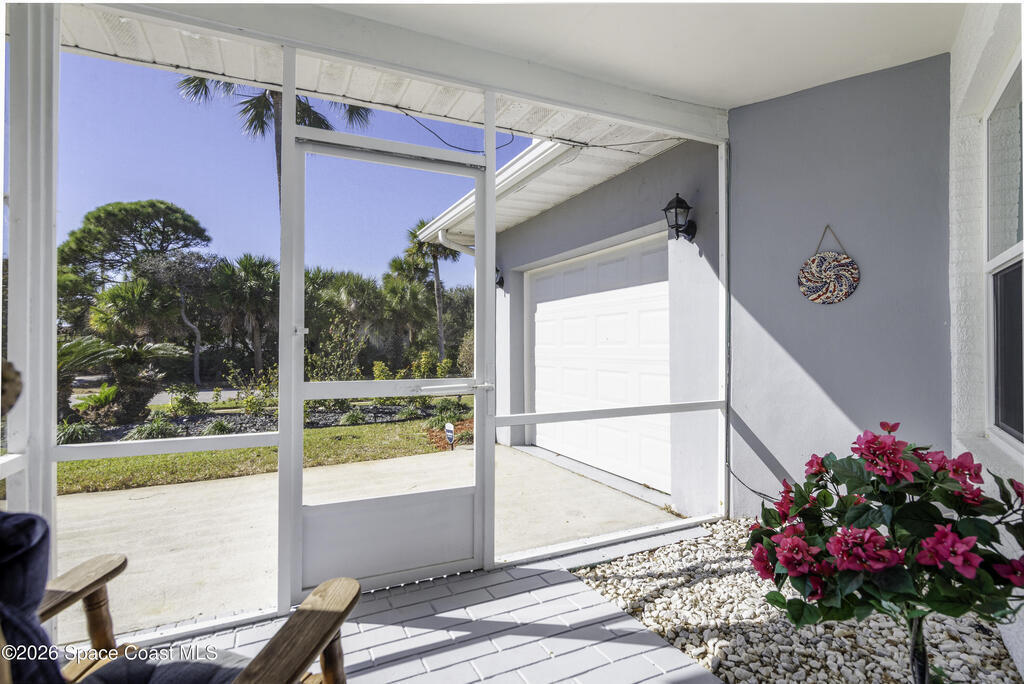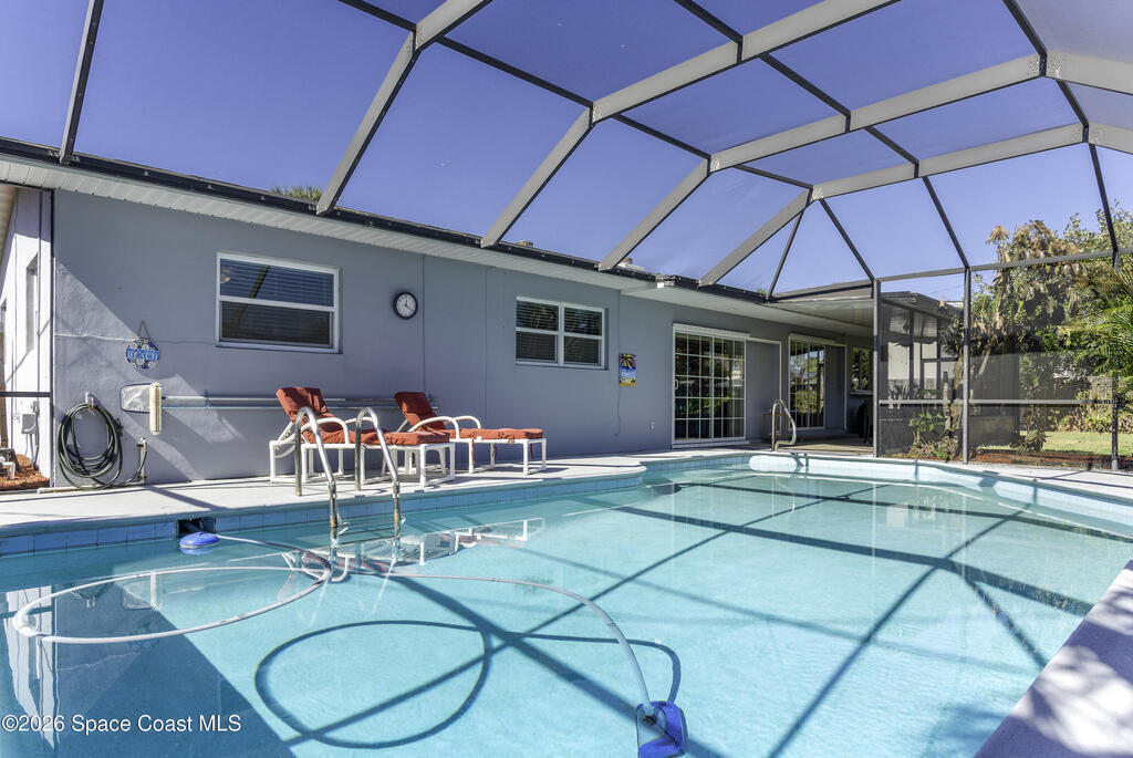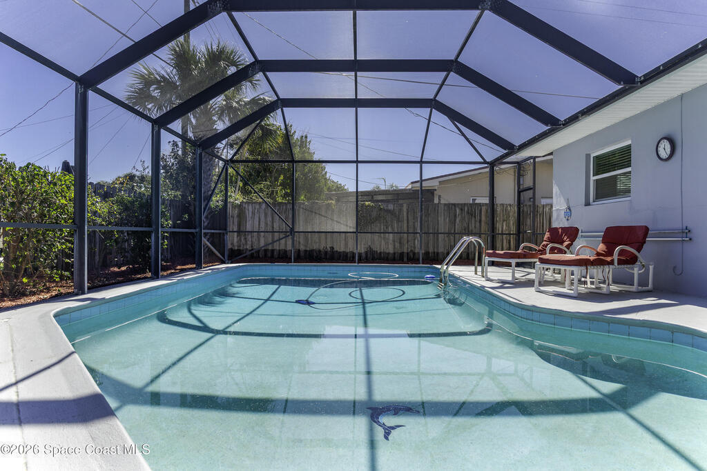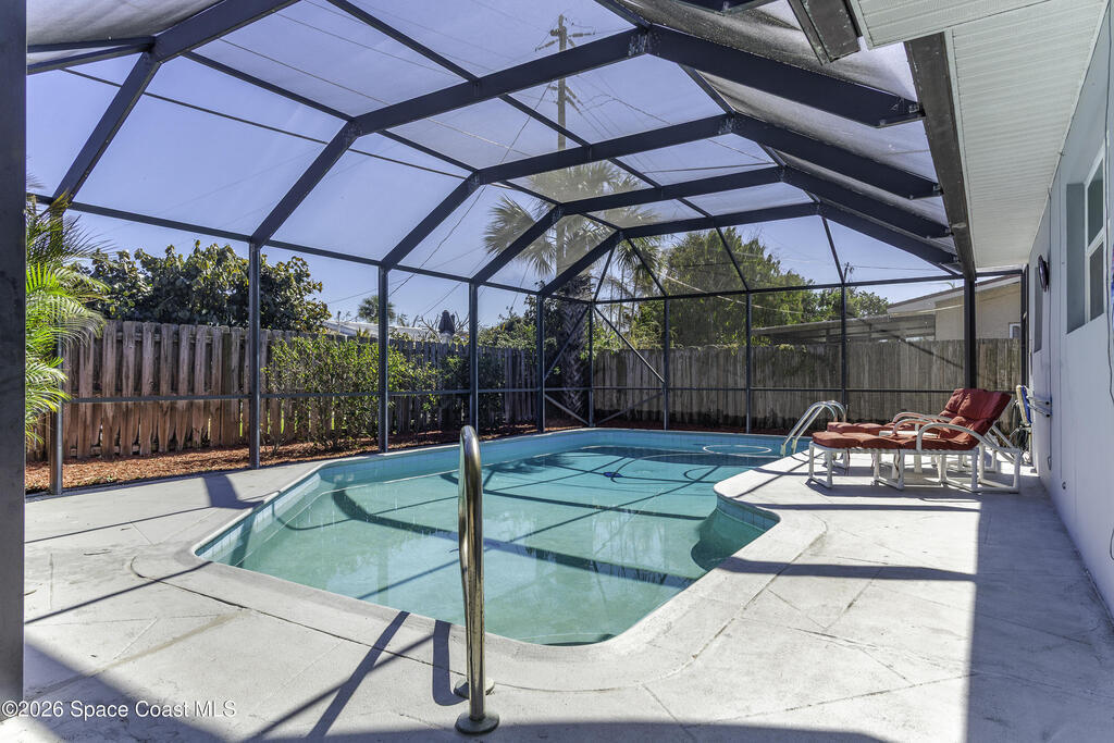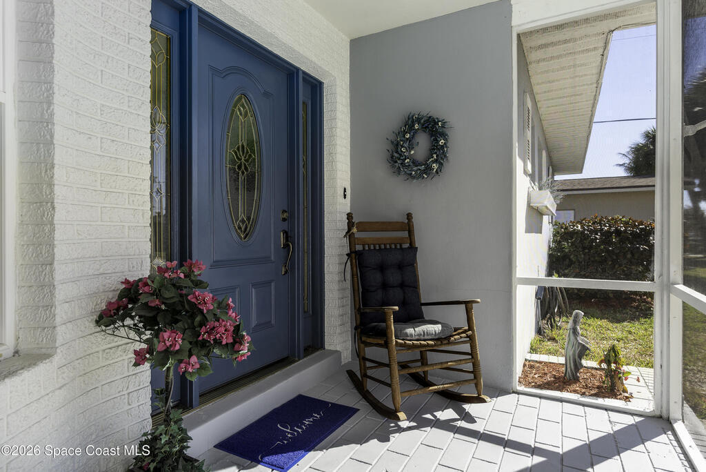 5-minute walk to the beach from this classic 3 bedroom, 2 bath with timeless character and strong fundamentals. Come bring your vision and unlock its full potential. Enjoy shade & privacy dining on the patio, lounging poolside or rocking on the front porch. Screen enclosures allow you to relax comfortably without pests. Flexible layout with 2 fireplaces adapts to your family's lifestyle. Stainless appliances, ample counter space & a pass-through window to patio make this bright, cheerful kitchen perfect for daily living & effortless entertaining. Open sliders in dining & sunken living rooms for seamless movement when hosting large gatherings. Vacuum system & new pump keep pool care simple. Impact windows in, roof, A/C and water heater all replaced. Retro-charm with modern conveniences. Live where others vacation in this welcoming beachside community offering sandy beaches, surfing, fishing and family oriented parks. Ideally located near PSFB, local causeway access & daily essentials.