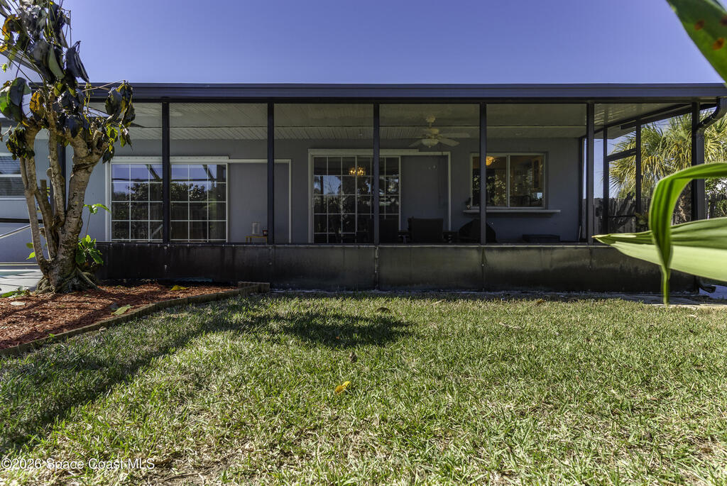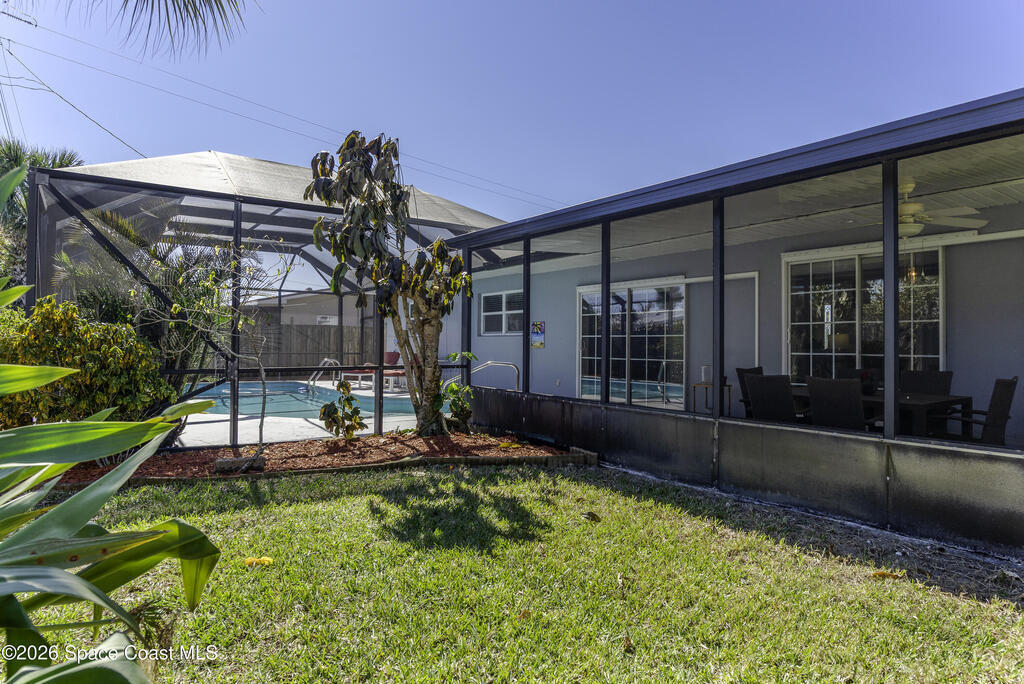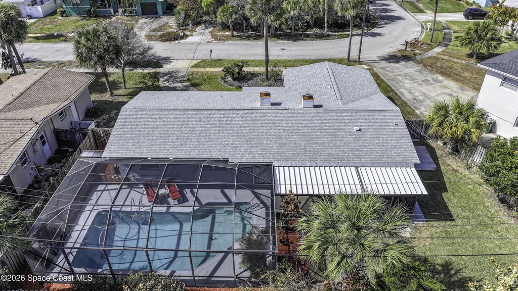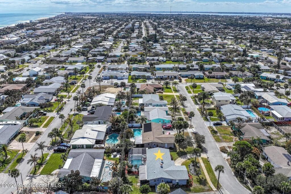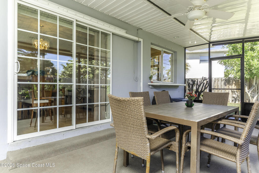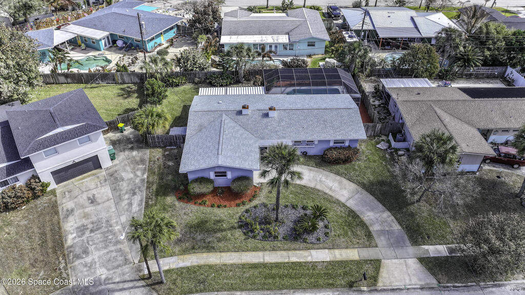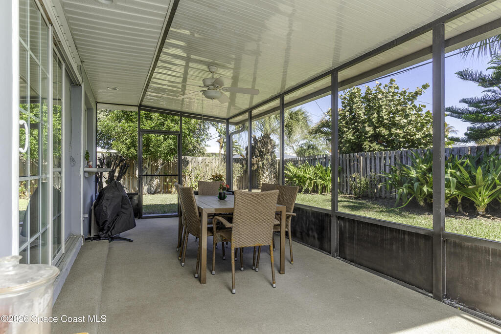 5-minute walk to the beach from this classic 3 bedroom, 2 bath with timeless character and strong fundamentals. Come bring your vision and unlock its full potential. Enjoy shade & privacy dining on the patio, lounging poolside or rocking on the front porch. Screen enclosures allow you to relax comfortably without pests. Flexible layout with 2 fireplaces adapts to your family's lifestyle. Stainless appliances, ample counter space & a pass-through window to patio make this bright, cheerful kitchen perfect for daily living & effortless entertaining. Open sliders in dining & sunken living rooms for seamless movement when hosting large gatherings. Vacuum system & new pump keep pool care simple. Impact windows in, roof, A/C and water heater all replaced. Retro-charm with modern conveniences. Live where others vacation in this welcoming beachside community offering sandy beaches, surfing, fishing and family oriented parks. Ideally located near PSFB, local causeway access & daily essentials.