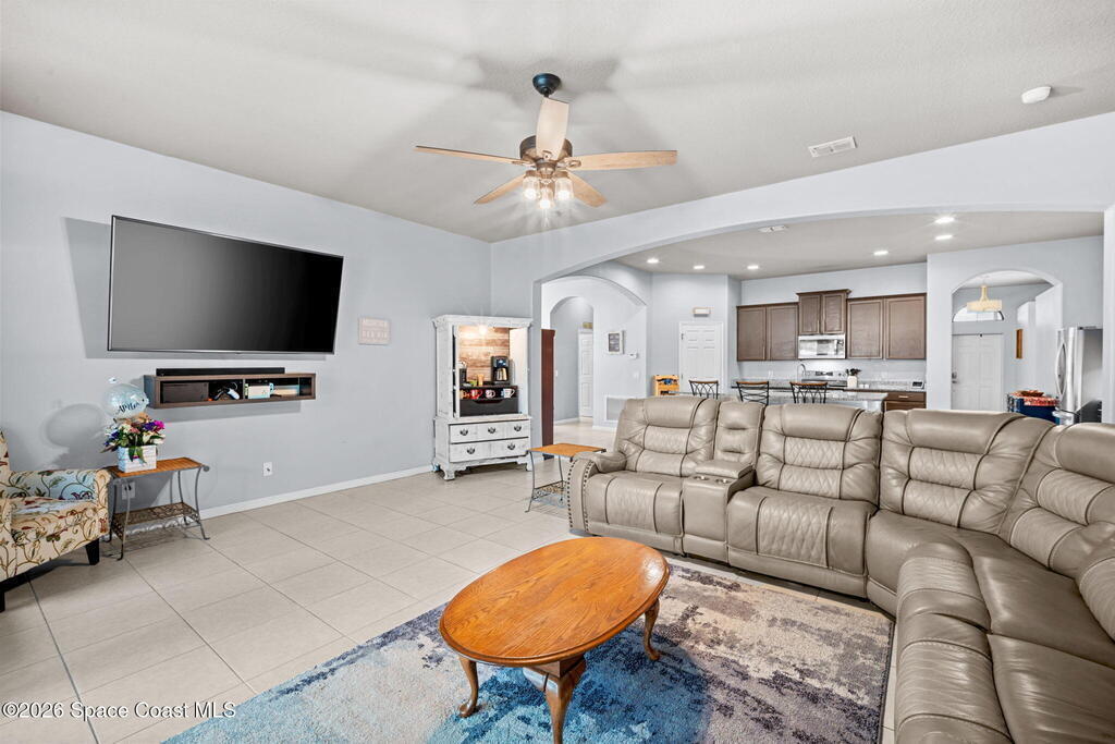 Welcome home to this beautifully maintained 4-bedroom, 3-bath residence offering a thoughtful and flexible floor plan designed to fit today's lifestyle. In addition to the spacious bedrooms, the home features a separate dining room and a private office/den, ideal for a home office, playroom, additional living space, or whatever your needs may be. Tall ceilings throughout enhance the home's bright, elegant feel, while the indoor laundry room adds everyday convenience. Step outside to a spacious and private backyard with a firepit that was created with friends and family in mind, complete with vinyl fencing on both sides perfect for relaxing & entertaining.The Three car garage makes room for cars, toys and even a golf cart if you wanted. This home was meticulously cared for and truly move in ready, this home shows beautifully and is located in a well maintained community with easy access to South Lake Elementary School. An exceptional opportunity for a new couple or family.