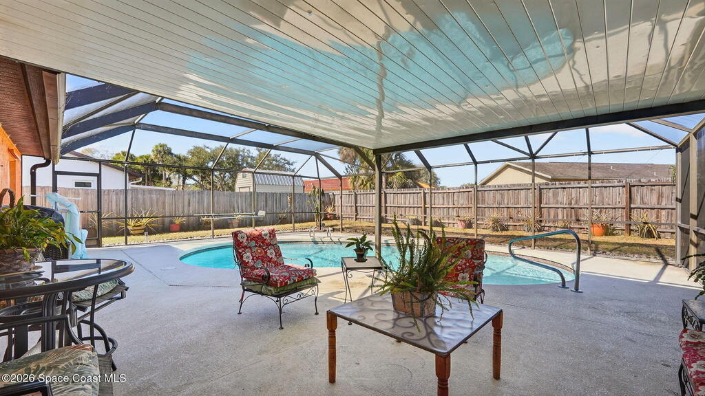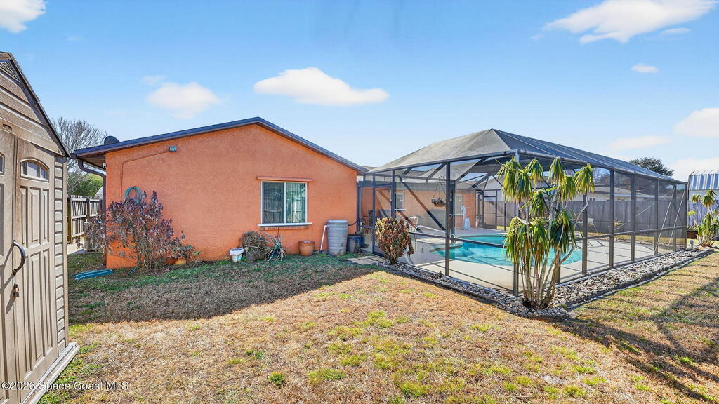There's No Place Like Home! And this home let's you live the Space Coast lifestyle comfortably with major convenience! Inside, you'll find easy-care laminate flooring throughout the main living areas with carpeted bedrooms and an updated hall bathroom for a fresh, modern feel. Outside is your screened-in pool and fully fenced backyard--perfect for entertaining, relaxing, or soaking up Florida sunshine year-round. Two storage sheds add extra functionality for tools, toys, or hobbies. Big-ticket updates were completed in 2019, including the roof, HVAC, and water heater, providing peace of mind. Washer and dryer were replaced in 2025 and are conveniently located in the garage. Centrally located near shopping, dining, and major employers, this home is also in close proximity to the upcoming Brightline station--making future commuting and travel even easier. This home delivers location, upgrades, and lifestyle in one powerful package at an affordable price. And no HOA!