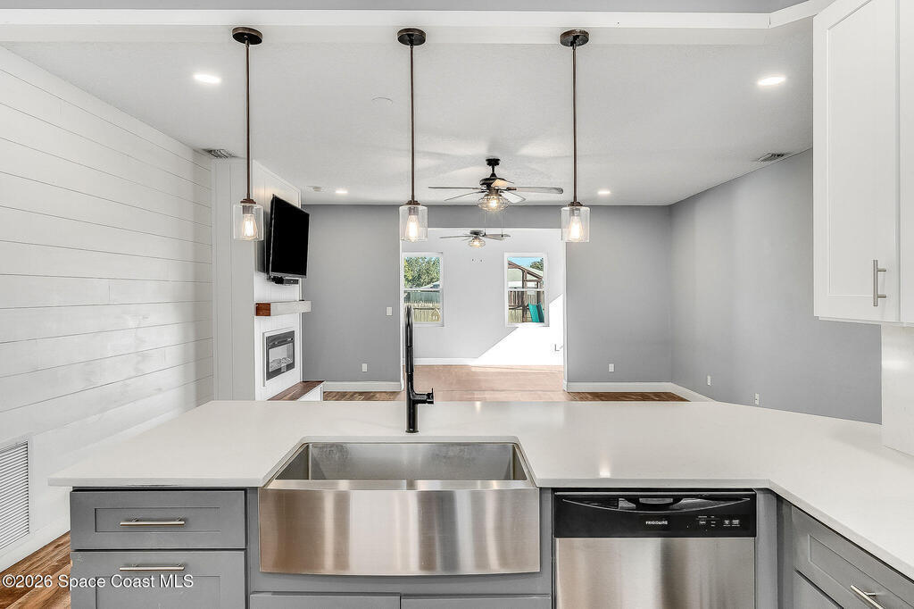 Welcome to this thoughtfully designed 3-bedroom, 2-bath home in sought after Grand Haven Development.This home features a split floor plan that offers both privacy and functionality A versatile flex space off the master provides the perfect area for a home office, playroom or gym. The heart of the home is the open-concept kitchen, complete with quartz countertops, ample cabinetry, and seamless flow into the living and dining areas- ideal for everyday living an entertaining. The living room is anchored by a stylish built in fireplace, adding warmth and character.Step outside to a large backyard designed for gatherings and relaxation, featuring a pergola and a summer kitchen. Plenty of space for a future pool.Roof - 2019, A/C - 2023 and Water Heater - 2023