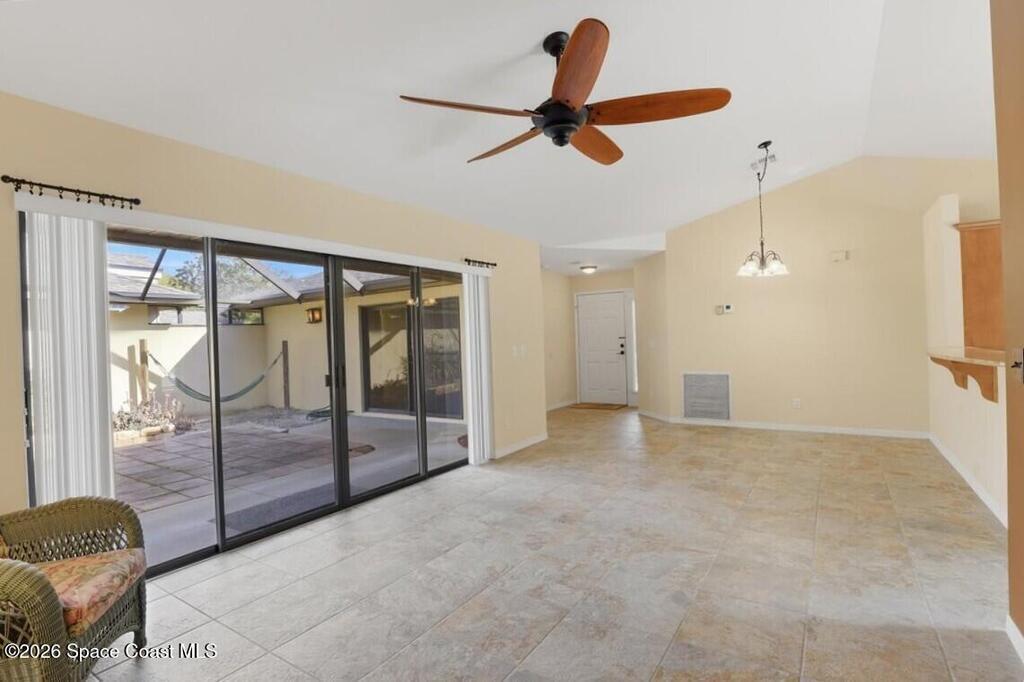 Breakfast Bar , Ceiling Fan(s) , Entrance Foyer , His and Hers Closets , Open Floorplan , Pantry , Primary Bathroom - Tub with Shower , Primary Downstairs , Split Bedrooms , Vaulted Ceiling(s)