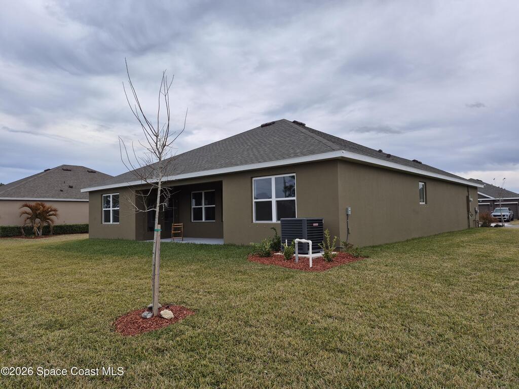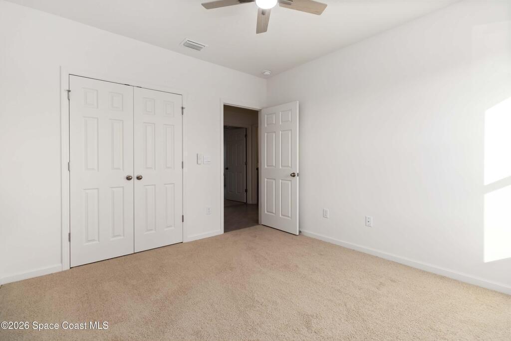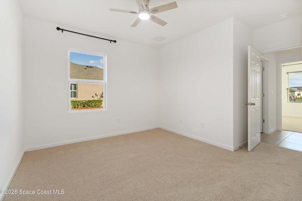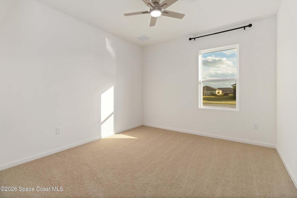 Move-in ready 12-month minimum rental in Crystal Bay Estates, Grant-Valkaria. This Denton model built by D.R. Horton in 2025 offers 4 bedrooms, 2 baths, and 2,231 square feet of living space on a .23-acre lot. The home features an open split floor plan, high ceilings, and a covered lanai with serene lake views backing to a wooded preserve. The kitchen includes quartz countertops, stainless steel appliances, and a brand-new washer and dryer. Enjoy resort-style amenities including a swimming pool, fitness center, clubhouse, pickleball, bocce ball, and dog park. Conveniently located near the Indian River off Highway 1, just north of Sebastian and approximately 15 minutes south of Malabar Road. Available now.