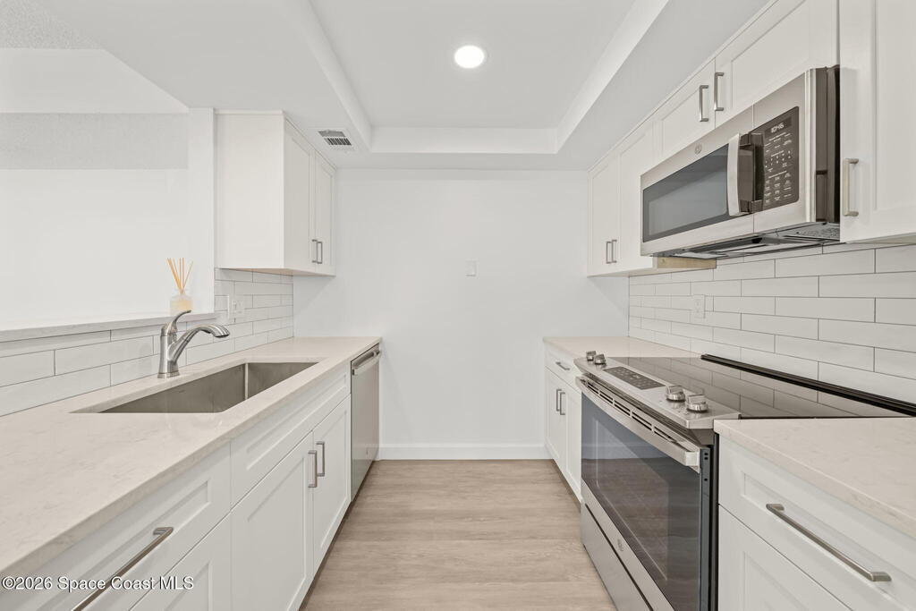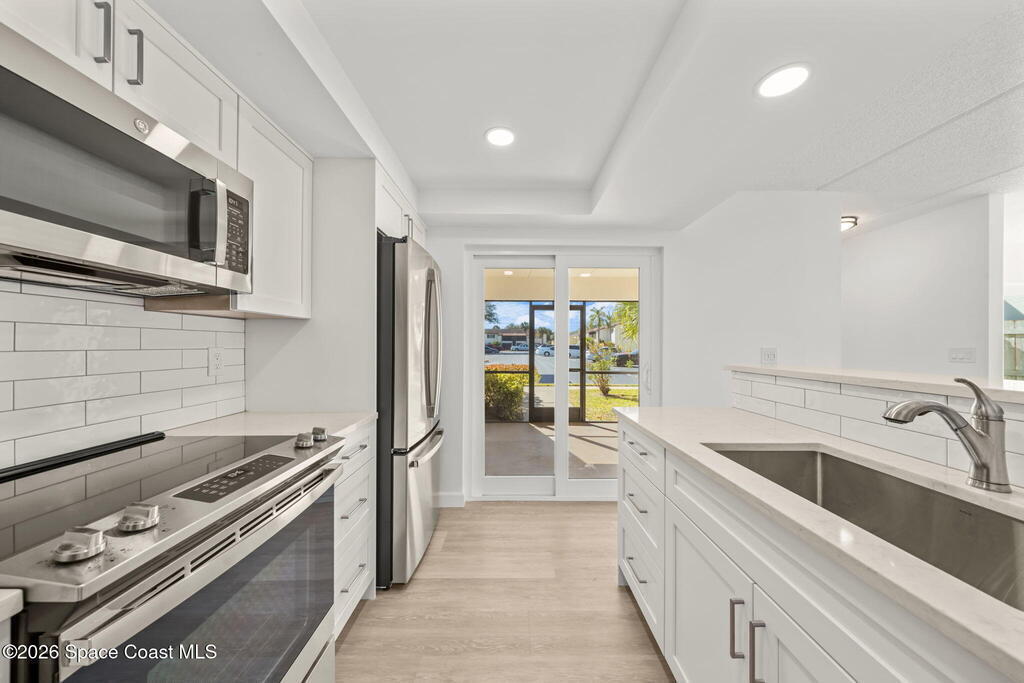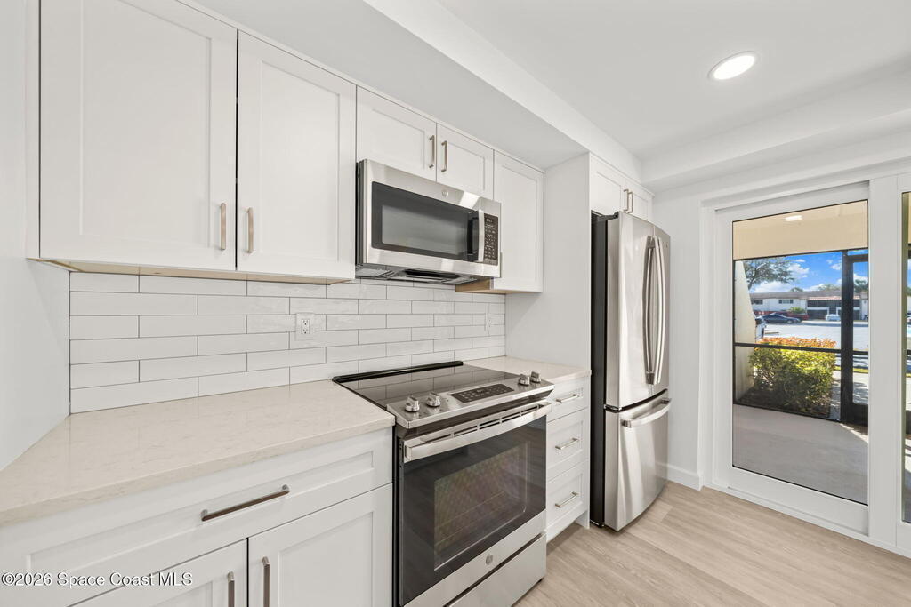Welcome to this thoughtfully updated 1st floor corner unit in The Ridgewood Club Condos. Whether you're starting out, scaling back, or searching for the perfect sunny escape, this low maintenance Florida retreat delivers location, layout, and lifestyle all wrapped in Florida sunshine. Located in the heart of Melbourne, minutes from the beach, FIT, Melbourne Airport, some of the Space Coast's top employers in Aerospace and healthcare including L3Harris, Northrop Grumman, Embraer, and Holmes Regional Medical Center, making this an ideal home base. Bright, free-flowing layout filled with natural light and modern updates throughout. The kitchen has been fully upgraded complemented by brand-new flooring, windows, bathrooms, and fresh interior paint. Move-in ready and thoughtfully designed for both entertaining and relaxing. Sip your morning coffee on the screened front porch or unwind on your private fenced patio.