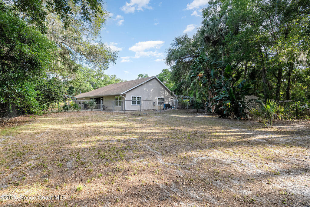 Rare multi-generational property in Windover Farms! Main 4BR/3BA home plus a fully independent 2BR/1BA ADA guest cottage connected by breezeway--ideal for extended family, caregiver, or rental income. Set on 1.58 horse-zoned acres, enjoy space for horses, RVs, or boats just 15 min to Kennedy Space Center & SpaceX. The screened heated pool with waterfall and large patio create a true Florida outdoor lifestyle. Inside, vaulted ceilings, open kitchen, and a primary suite with pool access add comfort and function. Guest cottage offers full kitchen, living room, and accessible bath. Updates include 2021 roof and fresh exterior paint. Oversized garage, multiple outbuildings, and low HOA complete the package. Windover Farms features oak-lined streets, trails, and tennis courts. Whether you need multi-generational living, equestrian space, or a launch-view retreat, this home delivers unmatched flexibility.