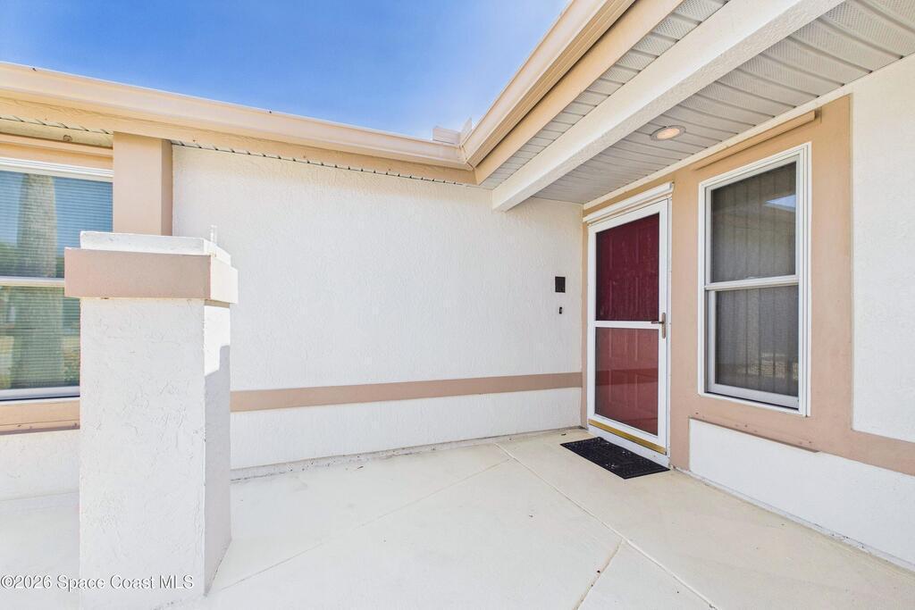 Located in Country Walk near Suntree Country Club, this updated 3BR/2BA split-plan home offers major improvements and move-in readiness. Updates include a 2021 roof, HVAC and hot water heater (2025), and full PVC plumbing. The remodeled kitchen (2022) features rollout pantry cabinetry, breakfast bar, and brand-new appliances. Interior highlights include a wet bar, pre-wired surround sound, and remote window covering. The primary suite serves as a private retreat, offers a walk-in closet, updated bath, and pool access. Enjoy a private chlorine pool with new pump, irrigation system, wired for whole house generator and has a whole-house water softener. Storm-ready with impact sliders, slide-in lanai shutters, and a NEW hurricane-rated garage door. Community amenities include pool, tennis, pickleball, and clubhouse.Well maintained, thoughtfully upgraded, ideally located.