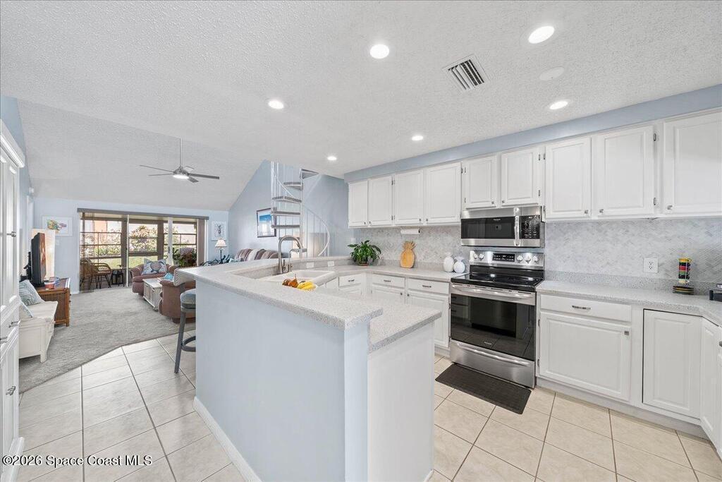 Experience coastal comfort in this exclusive South Beaches condo. All bedrooms and baths are conveniently on the first floor, with a cozy 813 loft upstairs perfect for an office or guest retreat. Soaring ceilings and abundant natural light create an airy, welcoming feel. The updated kitchen features SS appliances, a contemporary backsplash, and a breakfast bar for casual dining and entertaining. Enjoy upgraded carpeting, a refreshed main bath with walk-in shower, and major updates: AC in/out 2023, HWH 2023, new ductwork, and a 2021 roof for lasting confidence. The spacious sunroom adds valuable extra living space, and extended pavers are ideal for grilling and relaxing. Community highlights include a heated/cooled pool, club house, private beach access to enjoy unforgettable sunrises and rocket launches, a river pier to relish the stunning sunsets, and a boat/kayak ramp for fun on the water. Easy proximity to shops and great restaurants. Every day feels like a getaway!