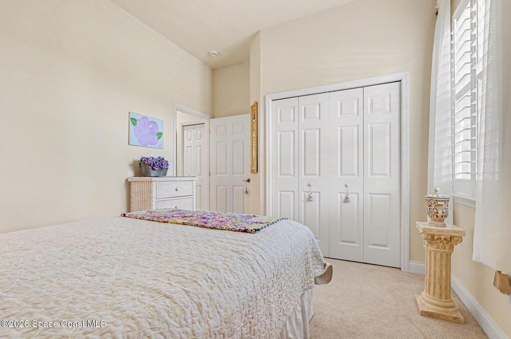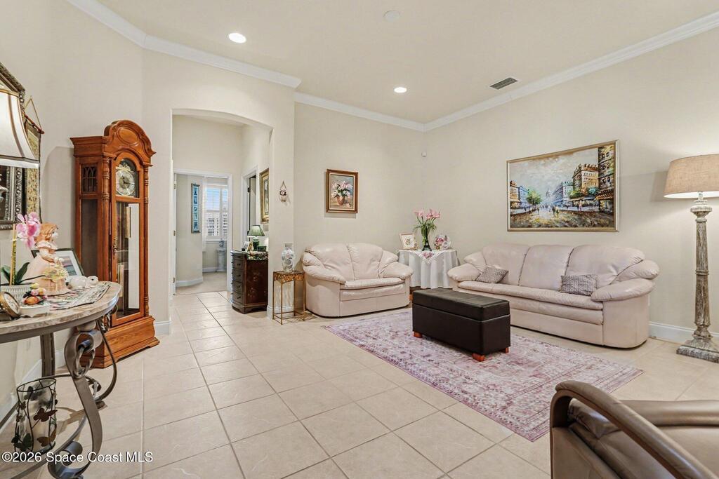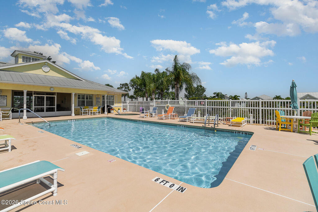 Welcome to Alamanda Key, a highly desirable 55+ gated community with tropical Key West-style villas, perfect for snowbirds or year-round Florida living.This immaculate, move-in ready home has 3-bedroom, 2-bath with a 2-car garage offers durable concrete block construction, impact windows, 2025 a/c, gutters w/screen and a metal roof for low-maintenance peace of mind. Enjoy relaxing in the covered and screened courtyard entry, ideal for enjoying Florida weather year-round. Inside features include crown molding, plantation shutters, updated kitchen w/gas stove, granite countertops and attractive cabinetry. The spacious primary suite offers a walk-in closet, garden tub, and separate shower. Community amenities include a heated pool and spa, pickleball, tennis courts, and a clubhouse with kitchenette and fitness equipment. The low HOA fee includes lawn care, irrigation, cable TV, and internet making for easy, low-maintenance living.