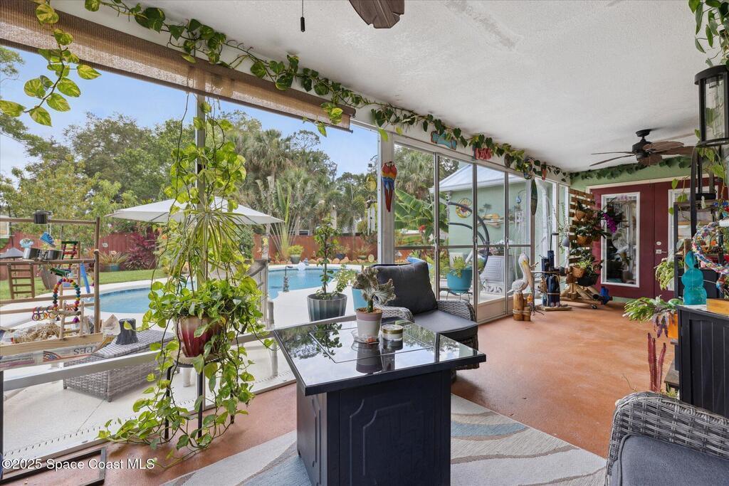 Tropical Oasis with Solar, RV Parking & Fruit Trees!Welcome home to this beautifully renovated 3-bedroom, 2-bath retreat where modern upgrades meet true Florida living. Step inside to a bright, open floor plan featuring brand-new vinyl flooring (2024) and stylish modern lighting throughout--every detail thoughtfully designed for comfort and appeal. Both bathrooms have been fully renovated, with the primary suite offering a spa-like experience complete with a double-sink vanity. The split-bedroom layout provides added privacy, perfect for guests or family. It also has a family room. Enjoy year-round indoor/outdoor living in the screened Florida room with four sliding screened doors that open to your private backyard--ideal for entertaining, relaxing, or future pool plans. The backyard is a true tropical paradise with mature peach, mango, avocado, and banana trees. Additional highlights include a 45' x 15' RV/boat pad with 30-amp hookup, American-made solar panels (2023) with transfera