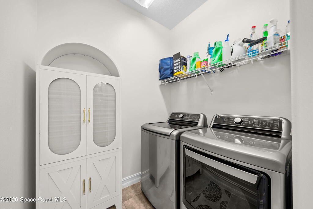 Saltwater pool. Summer kitchen. Preserve privacy with lake glimpses.Experience the Florida lifestyle in this beautifully maintained home backing to lush conservation. Fresh interior paint, plantation shutters, tall baseboards, whole house surround sound speakers, and tile flooring create a clean, modern feel throughout generous living and dining spaces. Two sets of triple sliders open the family room seamlessly to a screened lanai and sparkling waterfall pool, perfect for entertaining or relaxing in total privacy.The kitchen is designed to impress with granite countertops, glass tile backsplash, stainless steel appliances, gas range, breakfast bar seating and white crown-molded cabinetry with under-cabinet lighting.Retreat to a spacious primary suite with double-door entry, large walk-in closet, dual granite vanities, soaking tub and a mosaic-tiled shower.Private, polished and truly move-in ready.