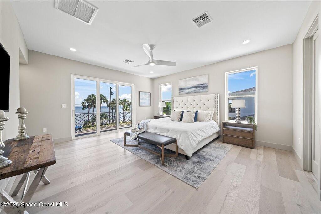 This beautiful riverfront property in Titusville, Florida, situated on Indian River, provides spectacular views of the water and unobstructed views of the launch pads. The newly developed house has a coastal contemporary design, which seamlessly blends modern luxury with classic charm. As soon as you step inside, you will be greeted by a welcoming and spacious open-plan living area. With four bedrooms and three and a half bathrooms, this home offers ample space for everyone. The backyard will include a fenced-in pool, spa, and a summer kitchen perfect for relaxing and enjoying the warm summer days. Don't miss your opportunity to see this pristine new property.
