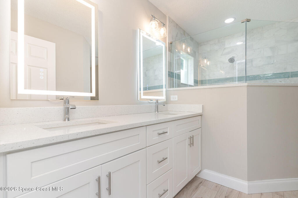 NO CLOSING COST LOANS AVAILABLE | NEW CONSTRUCTION Experience modern luxury in this exquisitely crafted 3/4-bedroom, 2-bath residence located in the heart of Palm Bay. Designed with an open-concept flow, the home features a Chef's Kitchen complete with a granite prep island, solid wood soft-close cabinetry, and premium stainless steel appliances.The spacious layout is bathed in natural light, leading you to a massive Primary Suite designed for ultimate relaxation. This home is defined by its high-end, included upgrades:Flooring: Luxury Vinyl Plank throughout (no carpet!).Bathrooms: Floor-to-ceiling shower tile, custom niches, and granite vanities.Details: Solid wood cabinets, designer hardware, and an electric garage opener.Note: One or more photos have been virtually staged.