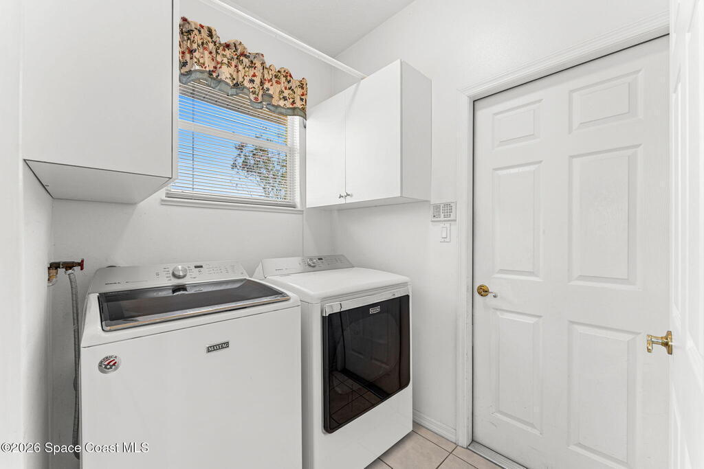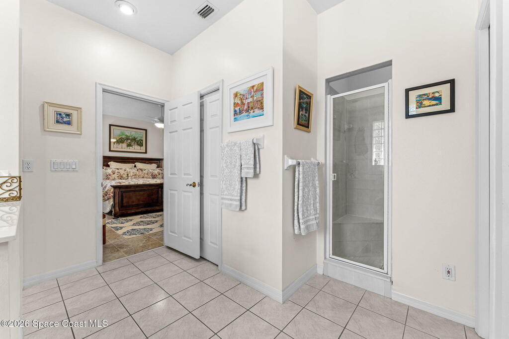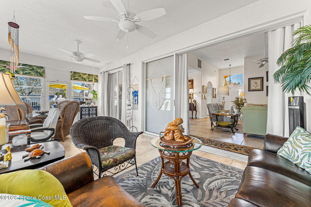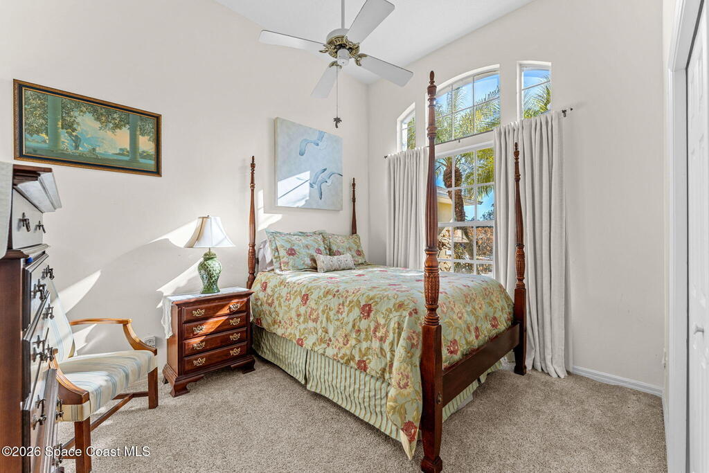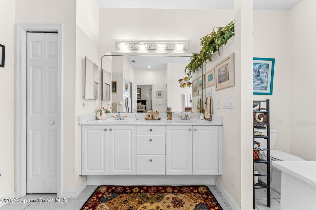 Beautiful 3BR/2BA home on a premium corner lot with water views in sought-after Viera East. Light and bright with abundant windows and tall ceilings. Spacious living and dining room combo opens to a large enclosed lanai with stunning lake and golf course views. Kitchen features a breakfast bar and a breakfast nook. Tile flooring throughout the main living areas. Generous primary suite with shower, tub, and 2 walk-in closets. Indoor laundry. Oversized garage has a separate golf cart entrance! Charming patio area perfect for outdoor dining and entertaining, complete with a gas outlet for a grill. Community amenities include a pool, a clubhouse, a fitness room, and a yummy on-site restaurant. Enjoy relaxed Florida living in this beautiful golf course setting!