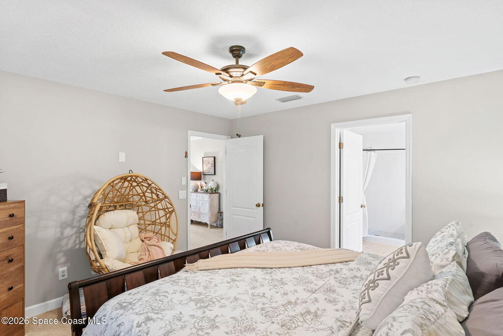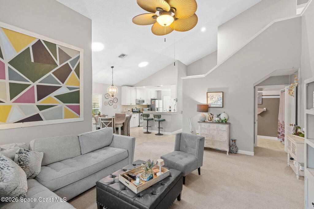 Meticulously maintained & perfectly located just across from the prestigious Suntree Country Club, this move-in ready home offers peace of mind with major updates already completed! Improvements include a 2024 roof, 2023 HVAC, 2023 water heater, storm impact windows & doors, water softener, additional attic insulation, custom blinds/shades, 3M window tinting, and updated interior & exterior paint. The light-filled kitchen features tall cabinetry, stainless appliances, a generous pantry, and a cheerful eat-in breakfast nook. The spacious primary suite offers updated cabinetry, a walk-in closet, soaking tub, and separate beautifully re-tiled shower. Neutral paint and flooring create a fresh, timeless feel throughout the home. Step outside to enjoy the expanded outdoor living space w/ a fenced side yard--multiple fruit trees and a small grassy pet area. Unbeatable location w/ the ability to walk to Suntree CountryClub & just minutes to shopping, dining, beaches, and easy access routes!