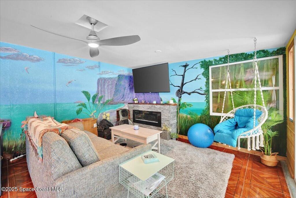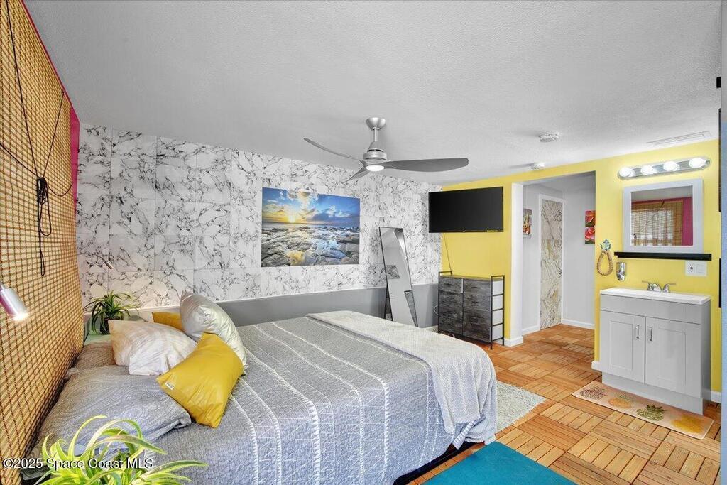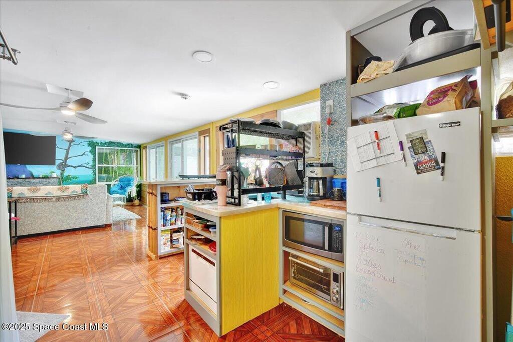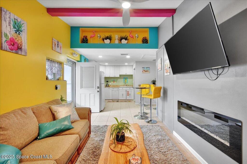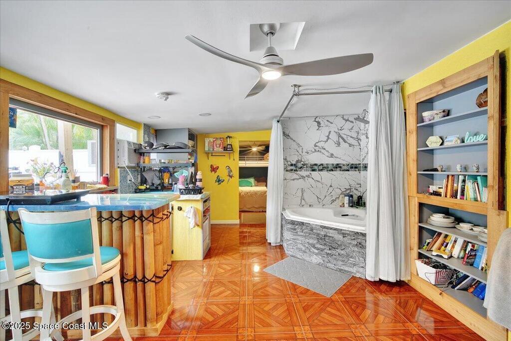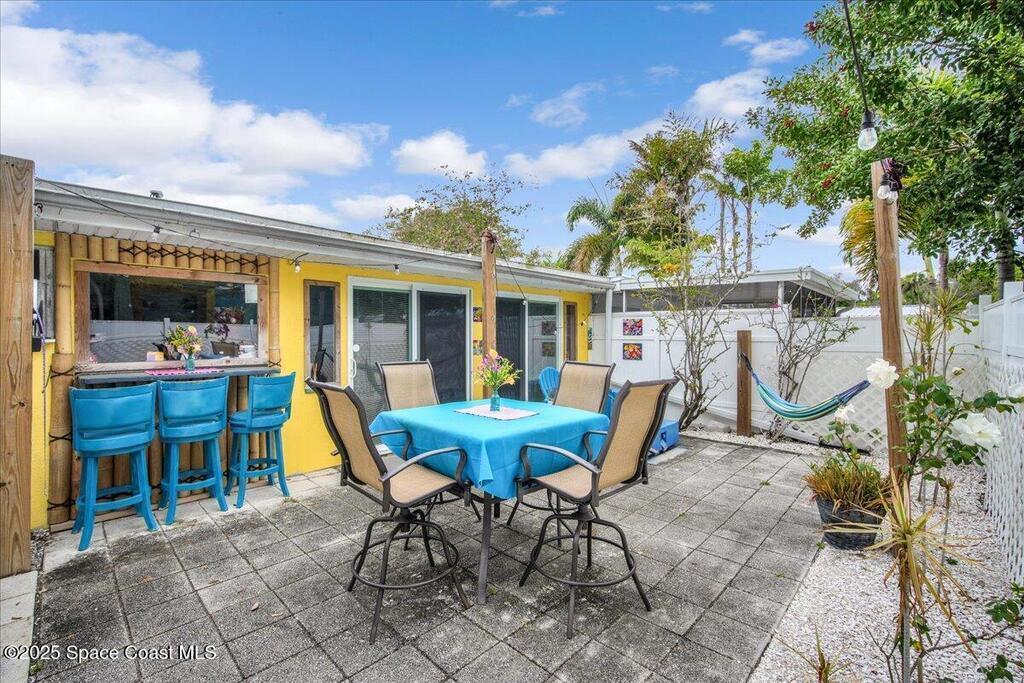 In the Heart of Cocoa Beach with endless possibilities is this beautifully renovated 4 bed 3 bath home that spans 2,332 sq. ft. and features a full income producing studio apartment with a separate entrance and fenced in yard making this ideal for extra income, AirBNB or guests. The main part of the house opens up to yet another opportunity for additional income, guest suite or an amazing Florida room. Just bring the pool table! From keeping this as a single family home, multi generational family use or an investors dream this is the one. The front yard is hardscaped with a large paver circular driveway allowing for plenty of parking, lush landscaping, hammock under the palms and a hangout area with firepit. Walking up you have screened front porch that takes you into the main house area with large living room and kitchen. The kitchen has all new cabinets with granite counters with a bar top and dining area.