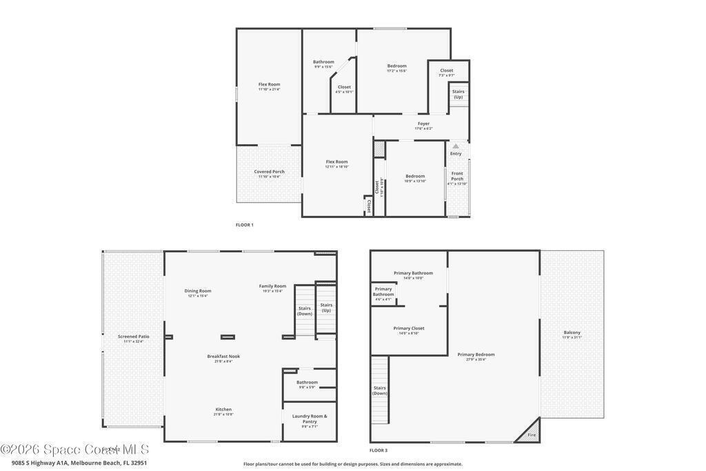 OCEANFRONT- BEACHFRONT- NO HOA- Located in desirable south Melbourne Beach, this UPDATED 3-story single-family home, with balconies on the 2nd and 3rd floors, plus a bonus room and a finished extra storage room, 3 full baths, and 3,110 square feet, features an open floor plan with multiple living areas, LUXURY VINYL PLANK flooring throughout, and an updated kitchen with an island and newer appliances. The primary suite is located on the third floor with a large bathroom, shower, and walk-in closet. An additional bedroom suite is located on the first floor, ideal for guests or flexible living. Exterior features include a large driveway and new shutters throughout. Centrally located near golfing, boating, many other outdoor activities, Vero Beach, Cocoa Beach, Viera, the Space Center, Melbourne and Orlando International Airports, Disney World, and other world-class attractions.