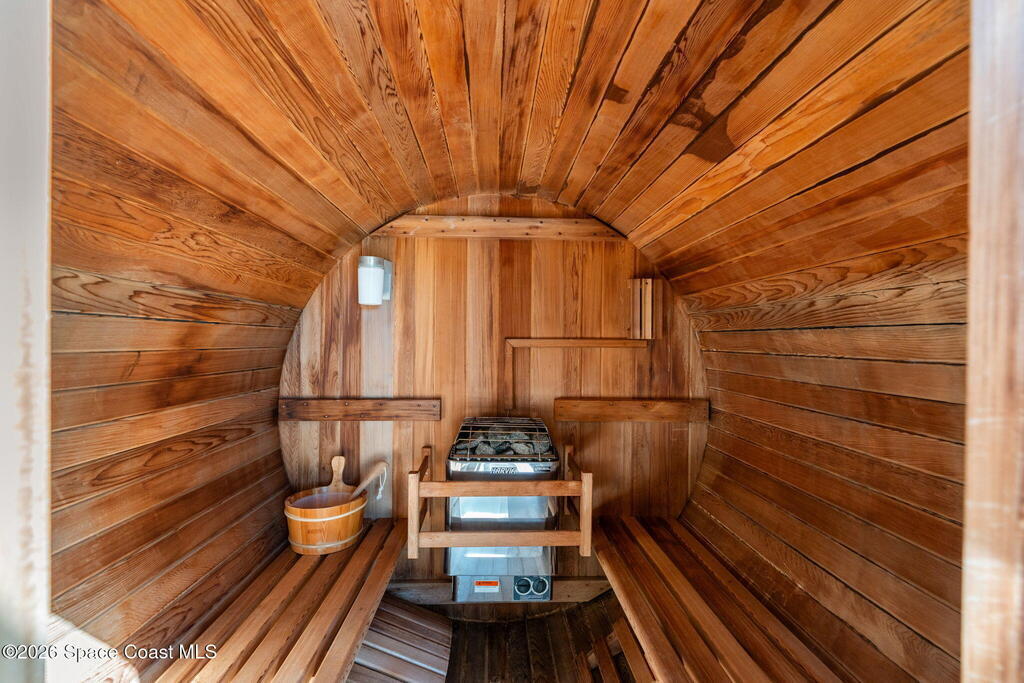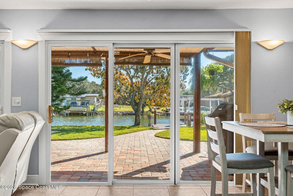 Turnkey canal-front living in one of Cocoa Beach's most favored neighborhoods, Cocoa Isles. This spacious single-story home features an open floor plan, peaceful water views and abundant natural light. Step outside to a large dock, newer boat lift, and be on the river within minutes - perfect for boating, paddleboarding, kayaking, or fishing right from your backyard while dolphins and manatees come to visit. Inside you'll find quartz counters, ''beach-retro'' style cabinets & drawers, SS appliances, keystone propane fireplace, split floor plan, and a comfortable primary suite with updated bathroom and walk-in closet. Major systems have been upgraded including newer roof, A/C, water heater, and 200 amp electrical service. Enjoy your very own wellness oasis, relaxing year-round with a covered patio, hot tub, sauna, and a south-facing water view perfect for sunbathing. Large 2-car garage, reclaimed-water irrigation, and included washer & dryer. Furnishings and decor negotiable.