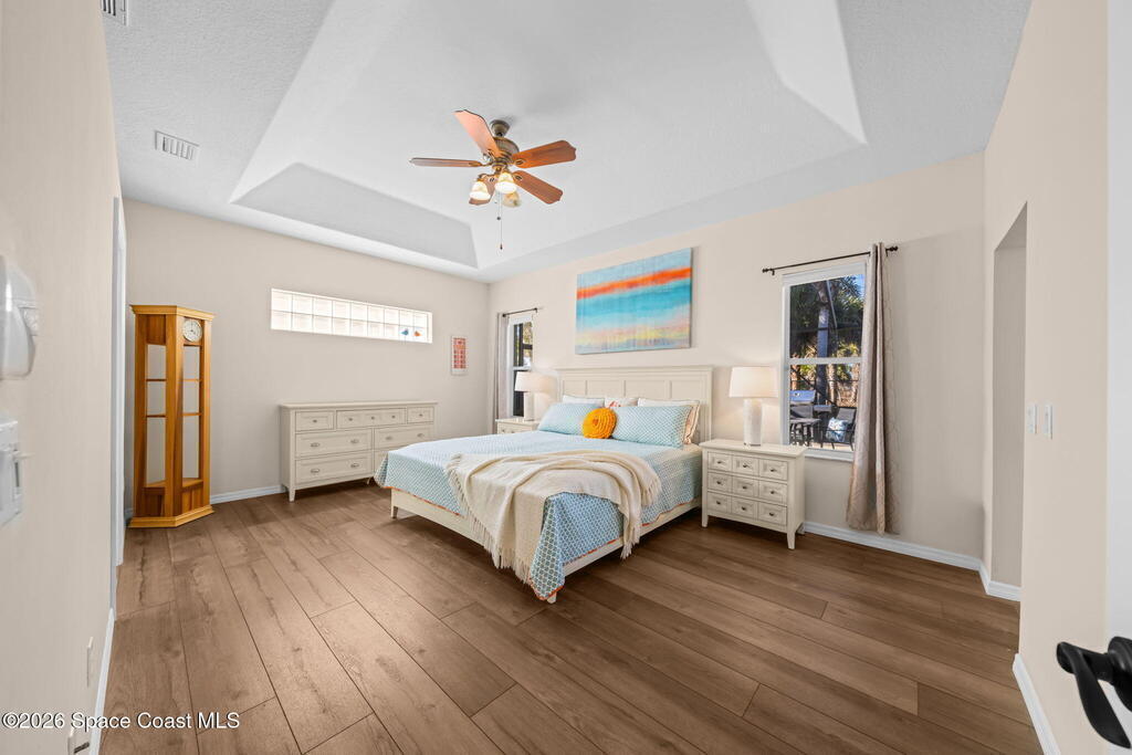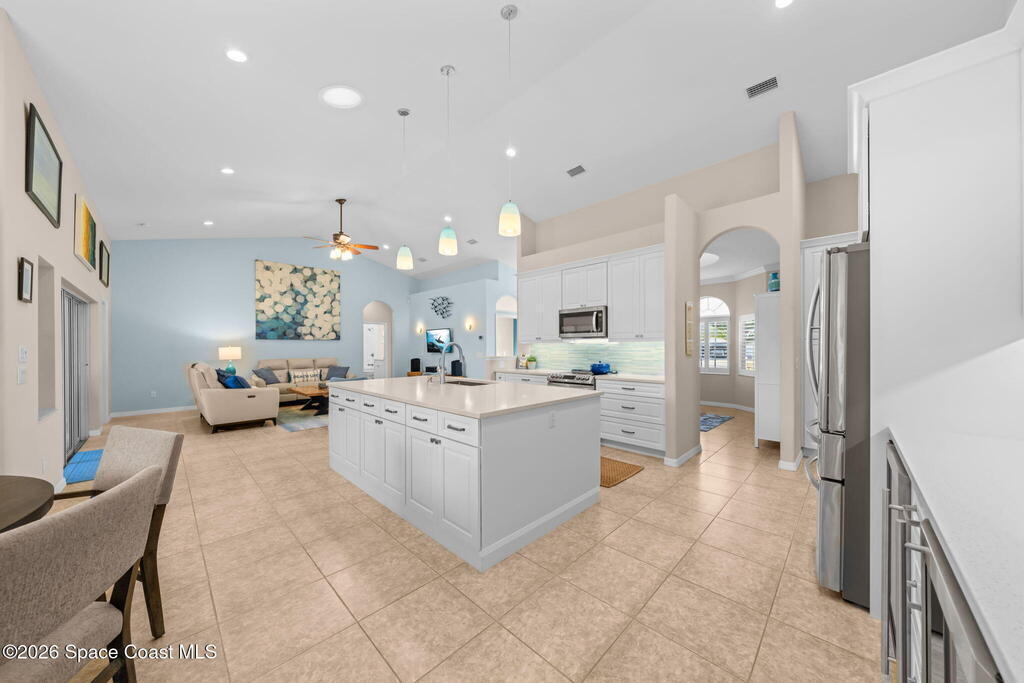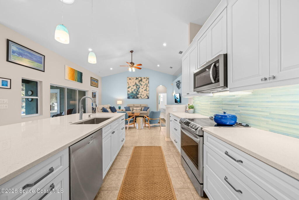 From driveway to dock in moments--welcome home. Located in a private, gated community with exclusive access to a community boat ramp and fishing pier on the Indian River Lagoon, this beautifully remodeled 4-bed, 3-full bath home offers nearly 2,500 sq. ft. of thoughtfully updated living space. The open layout and desirable split floor plan provide seamless flow, functionality, and privacy. The standout chef's kitchen boasts high-end finishes, premium appliances, and generous workspace--ideal for cooking and entertaining. Luxurious updates elevate all three bathrooms, while an additional flex room/office provides versatile space for work or guests. Step outside to a screened lanai overlooking your heated pool--perfect for year-round enjoyment and front-row rocket launch views under Florida's endless skies. Enjoy an oversized garage and spacious .35-acre lot. Located near Kennedy Space Center and beautiful beaches, this home delivers the ultimate Space Coast lifestyle.