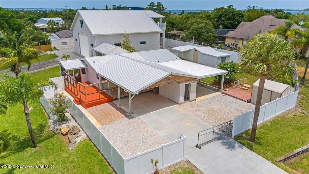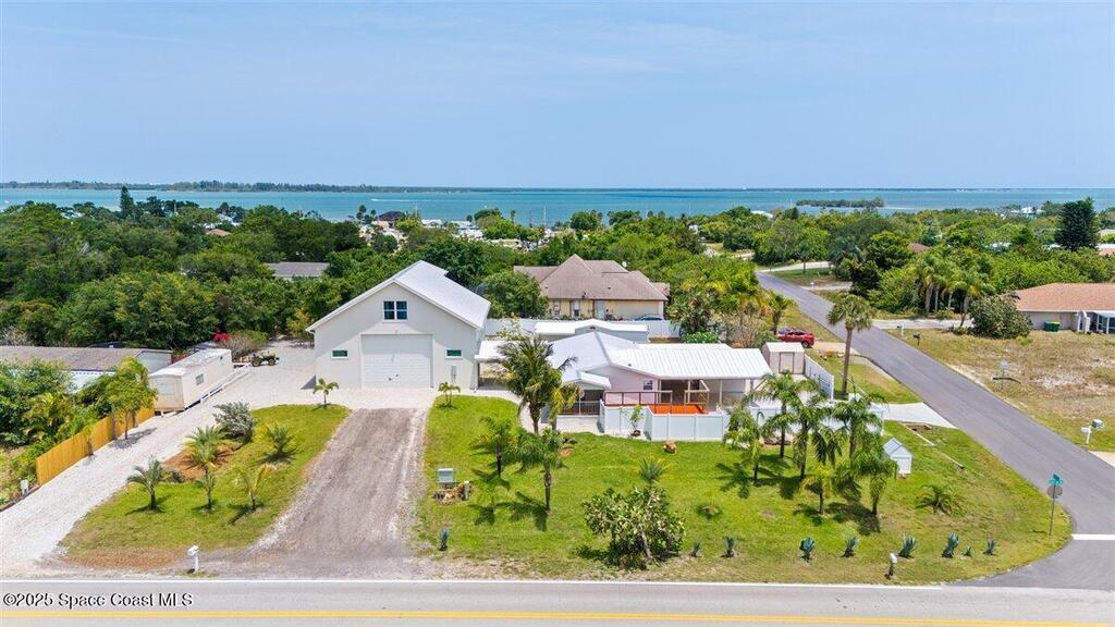 Rare multi-use property in the heart of Micco, situated 28 feet above sea level and just minutes from the Indian River and Sebastian Inlet. This 0.5-acre corner lot offers exceptional flexibility with a residential home plus a fully furnished apartment built in 2020 above a 40x45 garage, ideal for guest use, rental income, Airbnb, or multi-generational living. The apartment features a full bath, half bath, private laundry, and expansive deck with scenic viewsperfect for sunsets, rocket launches, and seasonal fireworks. Both structures include metal roofs, newer A/C units, and water heaters. The property offers ample parking at the main home, including garage parking in the 40x45, along with a double carport, covered cement RV pad with full hookups, hurricane impact windows, city and well water, and multiple storage buildings. No HOA and endless potential for residential, income-producing, or live-work use in a golf-cart-friendly coastal community.