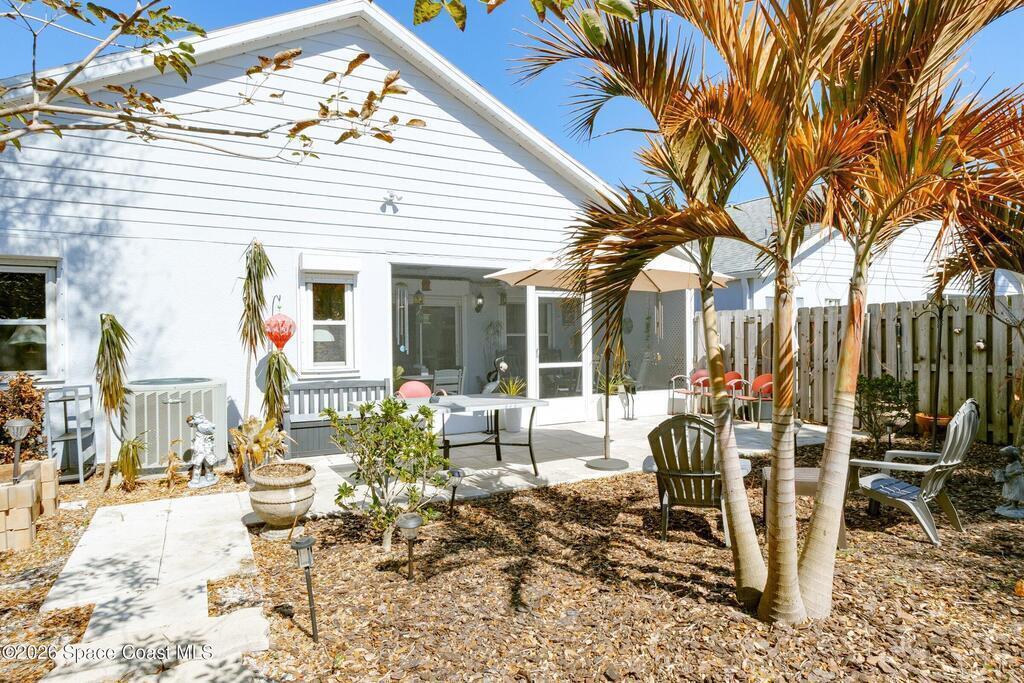 Lovely updated 3-bedroom, 2 bath split plan in South Oaks. One of a few privacy fenced yards in the community which is grandfathered in. Many updates including updated kitchen with stainless appliances and granite counter tops, both bathrooms fully updated, Double paned windows through out and roll down hurricane shutters. Tile and laminate flooring, no carpet! Light and bright open floor plan. Roof and skylights replaced in 2014. Enjoy your tropical paradise from your screened in porch. Immaculate and move in ready! Low HOA fees include heated pool, clubhouse, hot tub, sauna, tennis, gym, and RV/Boat parking all for $117.00 per month including lawn care!