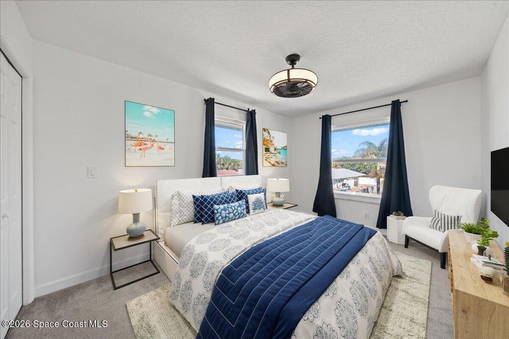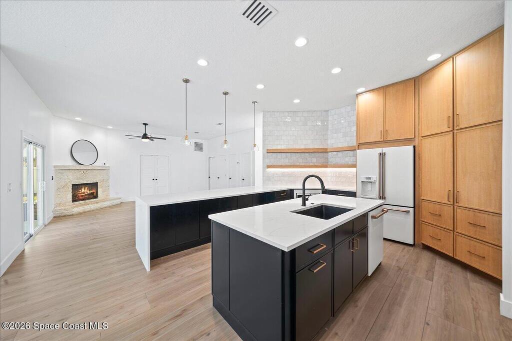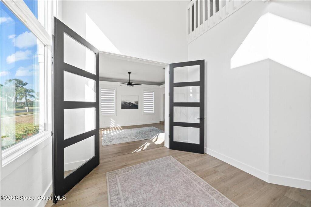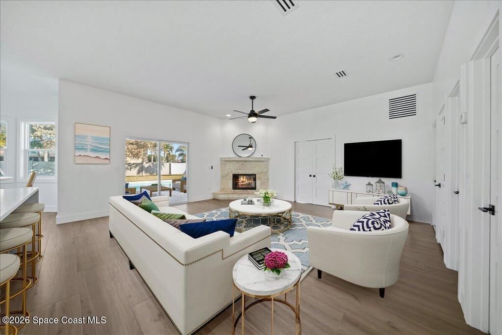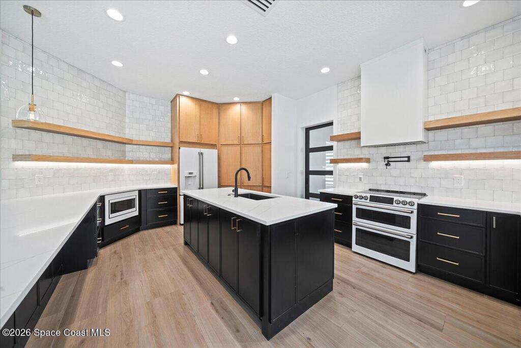Tucked into a desirable coastal community this beautifully updated home offers the Florida lifestyle at its best. Conveniently located near the beach local parks and in close proximity to A-rated Gemini Elementary. The quiet neighborhood setting provides a relaxed and inviting atmosphere. The home features tall ceilings and has been freshly painted creating a bright open feel throughout.The remodeled kitchen showcases quartz countertops white appliances and stylish floating shelves ideal for both everyday living and entertaining. Hurricane-rated impact glass and doors provide added peace of mind along with a newer roof installed in 2021.Situated on an oversized corner lot the outdoor space is designed for enjoyment with fresh landscaping a vinyl fenced backyard and a pool with newly resurfaced finish. Enjoy scenic views of the golf course and lake offering a serene backdrop and enhanced privacy. Move-in ready and thoughtfully upgraded this home delivers comfort convenience and coastal