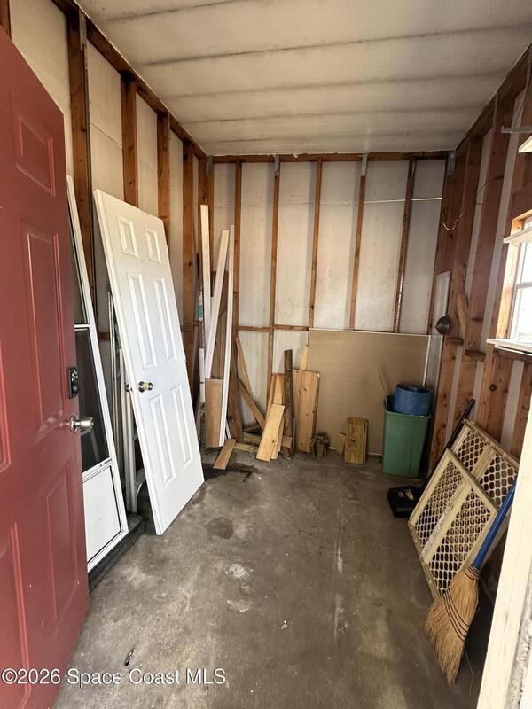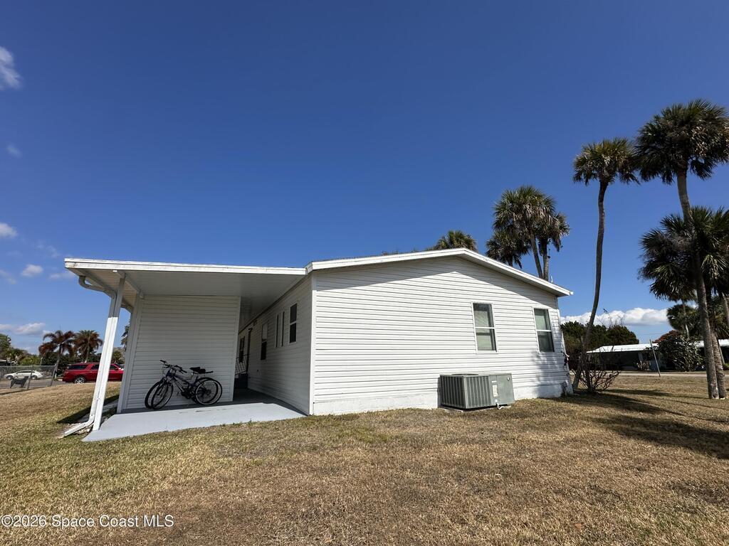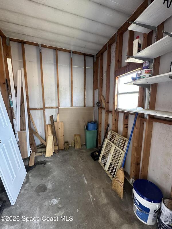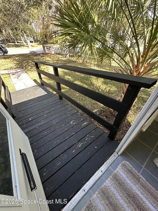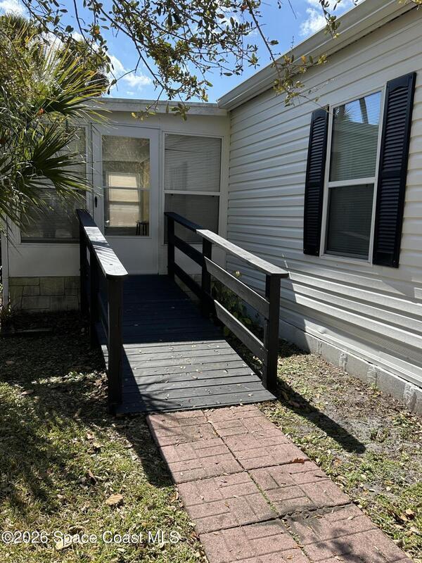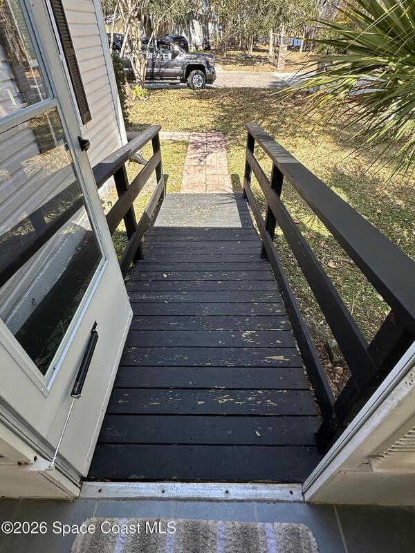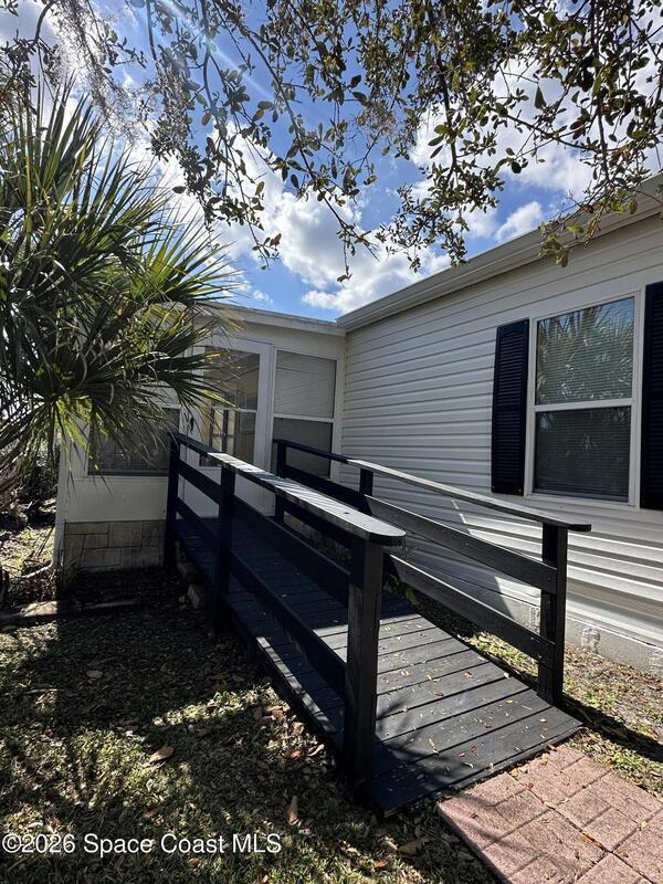 Charming and affordable cottage living where YOU OWN THE LAND - NO LOT FEES - NO HOA! This well maintained home sits on a spacious corner lot offering freedom and flexibility. Enjoy extra yard space, an extra-deep carport, workshop shed, and a bright, oversized sunroom with wheelchair ramp accessibility. Inside, the open layout features large, airy rooms, double-pane windows, indoor laundry, and generously sized bedrooms for comfortable living. Major updates include a 2022 Florida code-compliant foundation, plus 2021 vinyl siding and house wrap for peace of mind. Conveniently located near shopping, dining, I-95, Port Canaveral, and Orlando. Move-in ready, low-maintenance, and budget-friendly--your perfect little cottage without the monthly fees!