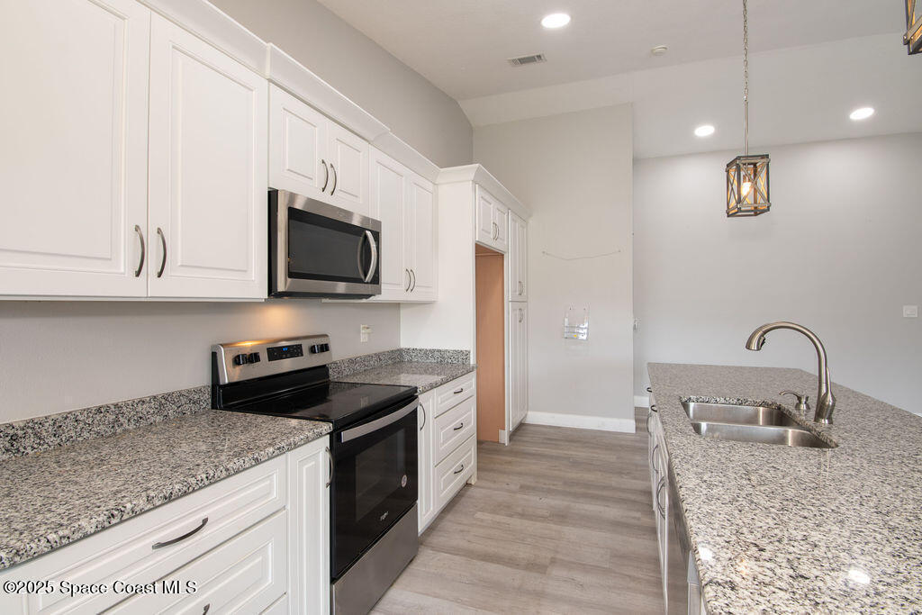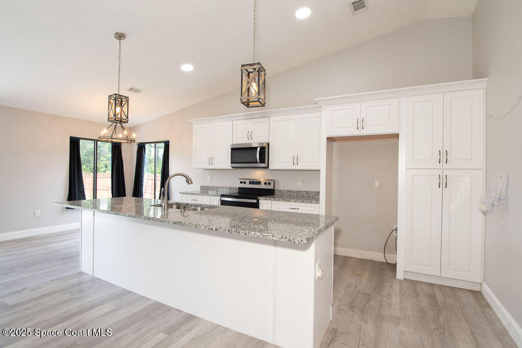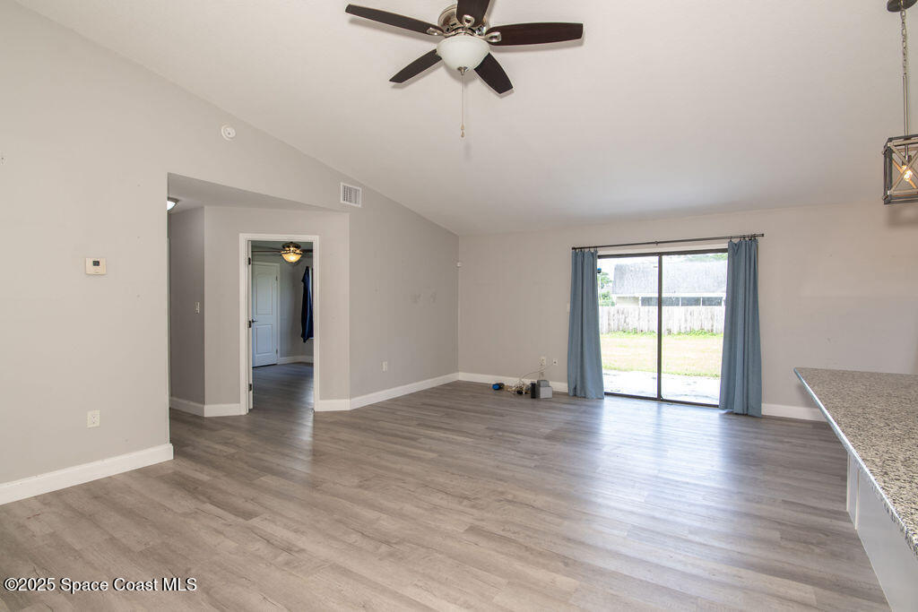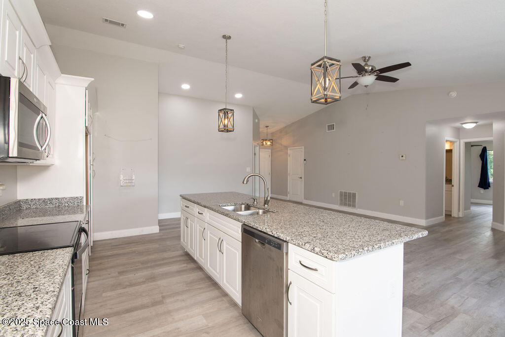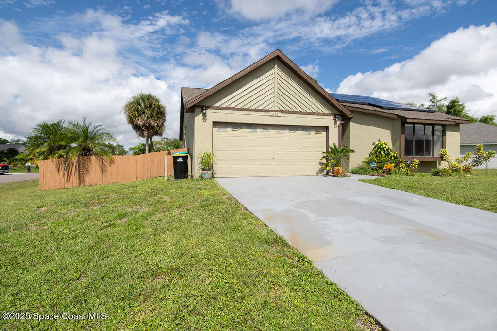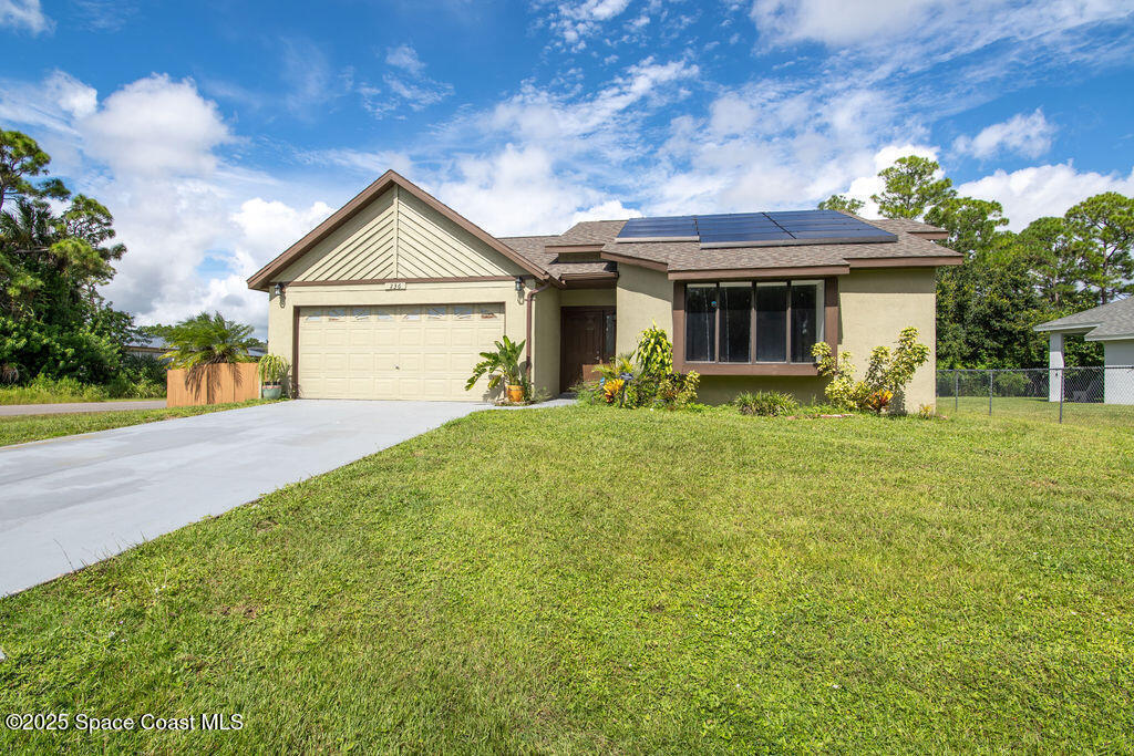 NO FHA OR VA FINANCING... I am told* SOLAR PANELS have been paid for. *BOM 3/01/26. Owner exterminated active termites. Treatment bond to convey to buyer. No additional repairs or exploration done.* Beautifully maintained 3-bedroom, 2-bathroom, 2-car garage home that's now available. It's located on a spacious corner lot and features city water and sewer!!! The home boasts cathedral ceilings and an open floor plan. The kitchen has been updated with crisp white, soft-close dovetail cabinets, granite countertops, and stainless steel appliances. Both bathrooms have also been updated. You'll find luxury vinyl plank flooring throughout the entire house, with no carpet. The roof was replaced in 2022.The large, fenced backyard is perfect for entertaining, and the home offers easy access to shopping and I-95.
