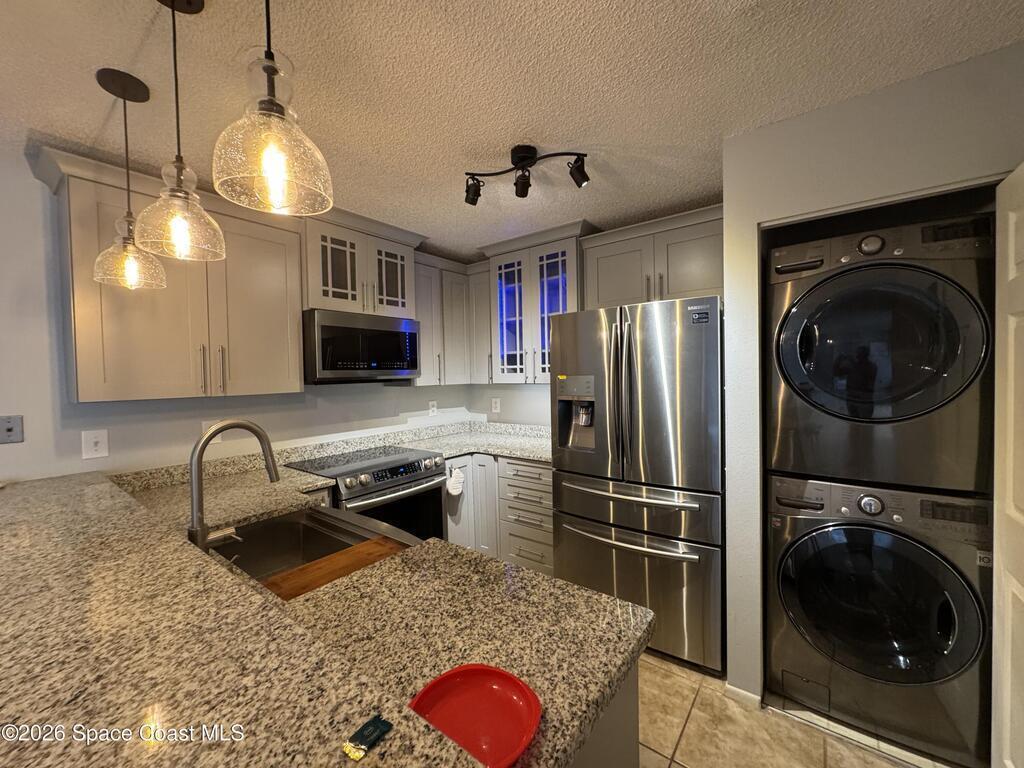 Dishwasher , Electric Oven , Electric Range , Freezer , Refrigerator , Washer/Dryer Stacked
