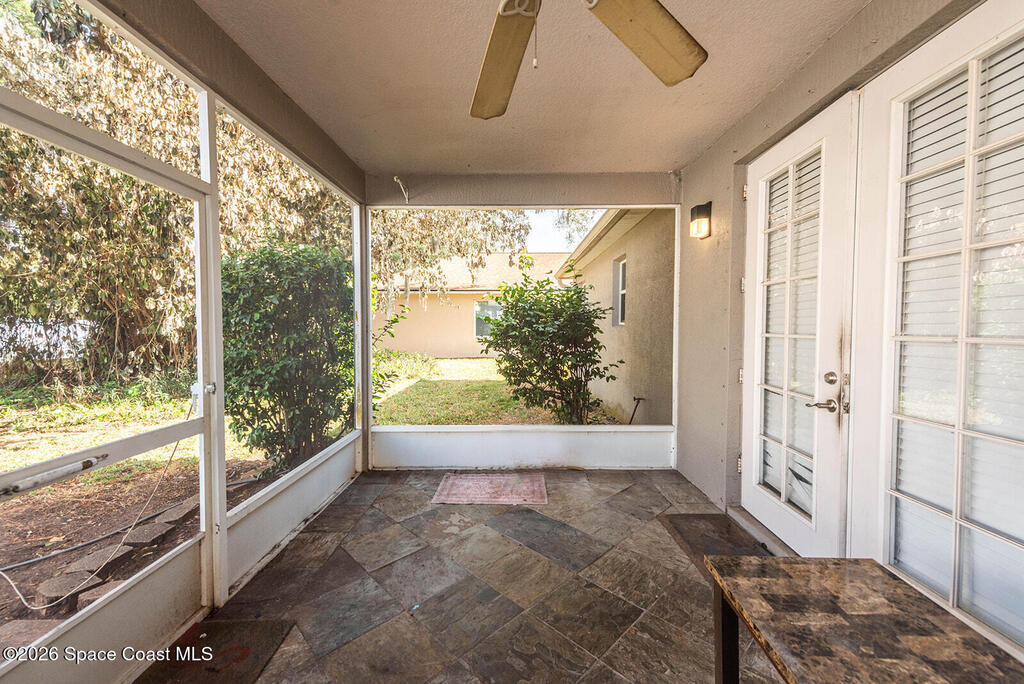 Welcome to The Woods at LaCita - Phase 2, a gated golf course community offering beauty, comfort, and convenience. This stunning 1,800+ sq. ft. home is nestled in a lush tropical setting and features laminate flooring throughout, a newer A/C and water heater, and a spacious primary suite with a relaxing jetted tub. Enjoy Florida living year-round on the fully screened back porch -- perfect for morning coffee or evening gatherings. Residents have access to a community pool and the serenity of golf course living. Ideally located just minutes from Playalinda Beach, about 10 minutes to the Kennedy Space Center, 30 minutes to Orlando International Airport, and close to major roadways. This is Florida lifestyle at its best.