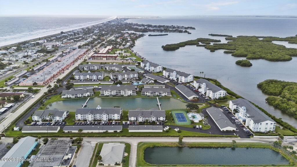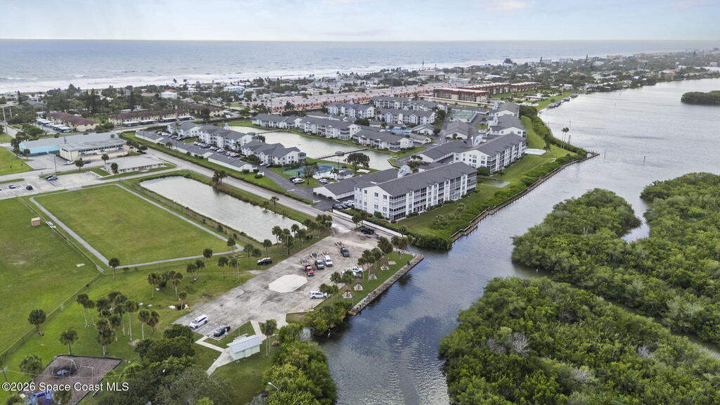 Wake up to canal views, sunrises, and dolphins right outside your window. This 4th-floor condo has been updated with granite countertops, stainless steel appliances, tile flooring throughout and impact windows. The primary suite is tucked in the back corner overlooking the water and features a spacious walk-in closet. The HOA covers everything except electric, making for easy living. Located just two blocks from the beach, you'll enjoy true resort-style amenities including three pools, tennis and pickleball courts, a clubhouse, riverfront boardwalk, and even RV/boat parking. Ready to make this slice of paradise home?